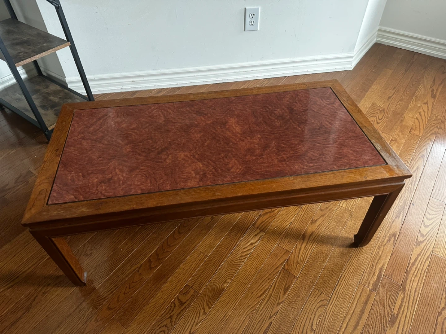 Beautiful wooden coffee table in great condition. The top has a rich wood grain finish that adds warmth to any living room. Very sturdy and well made.