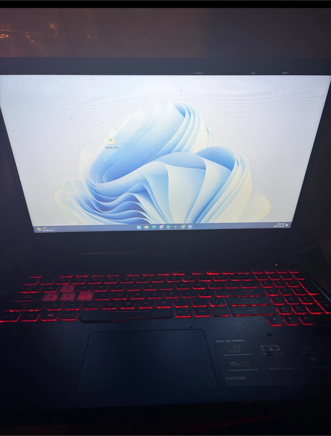 Selling an ASUS TUF Gaming laptop. The keyboard has red backlighting. It's in good condition and ready for a new owner. Runs any games smoothly, fortnite at 140 FPS Valorant at 300 FPS and Call of duty at 60 FPS