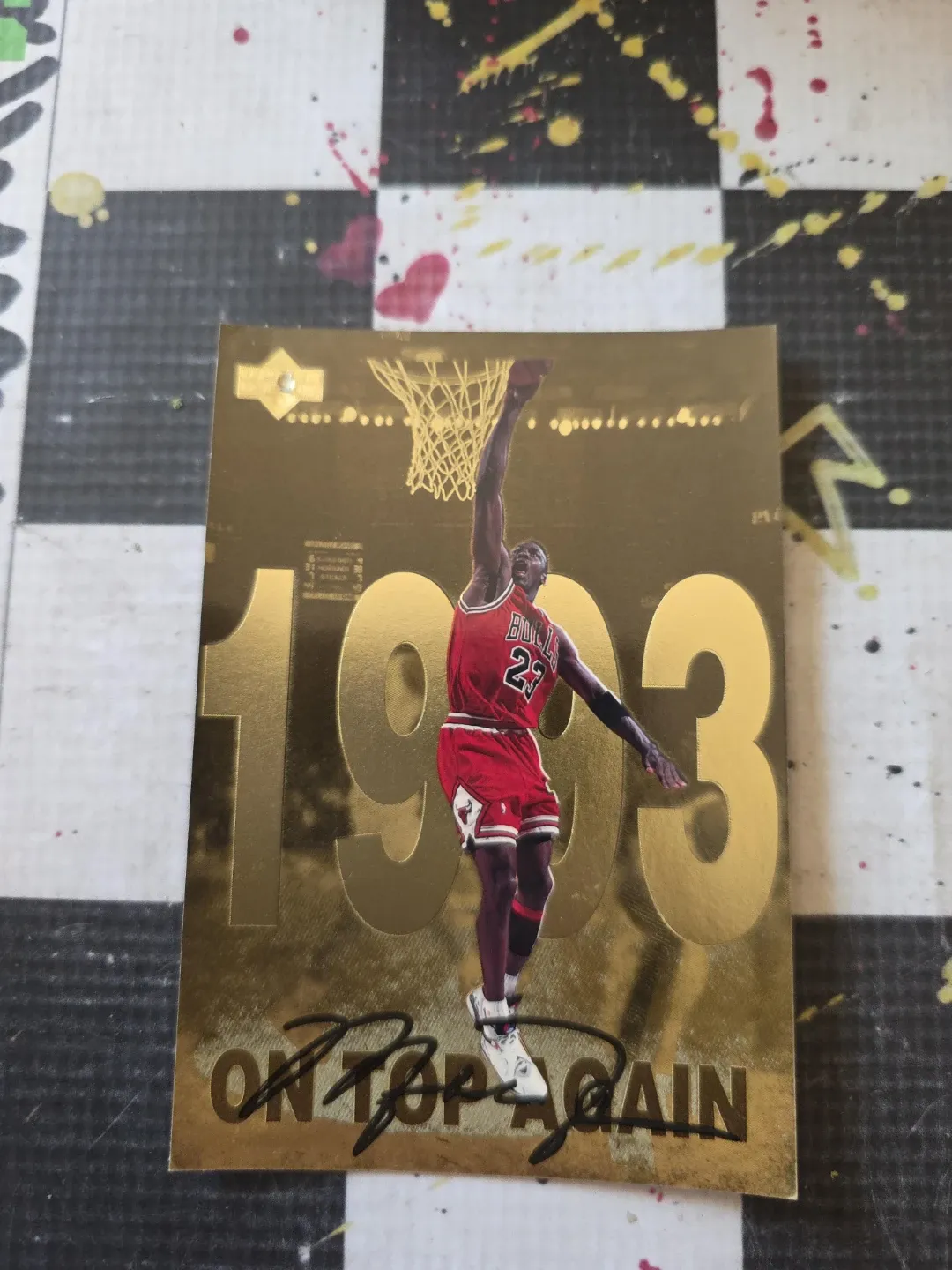 Selling a 1993 Upper Deck Michael Jordan basketball card. It features a gold design with Michael Jordan in action. The card is in good condition and would be a great addition to any sports memorabilia collection
