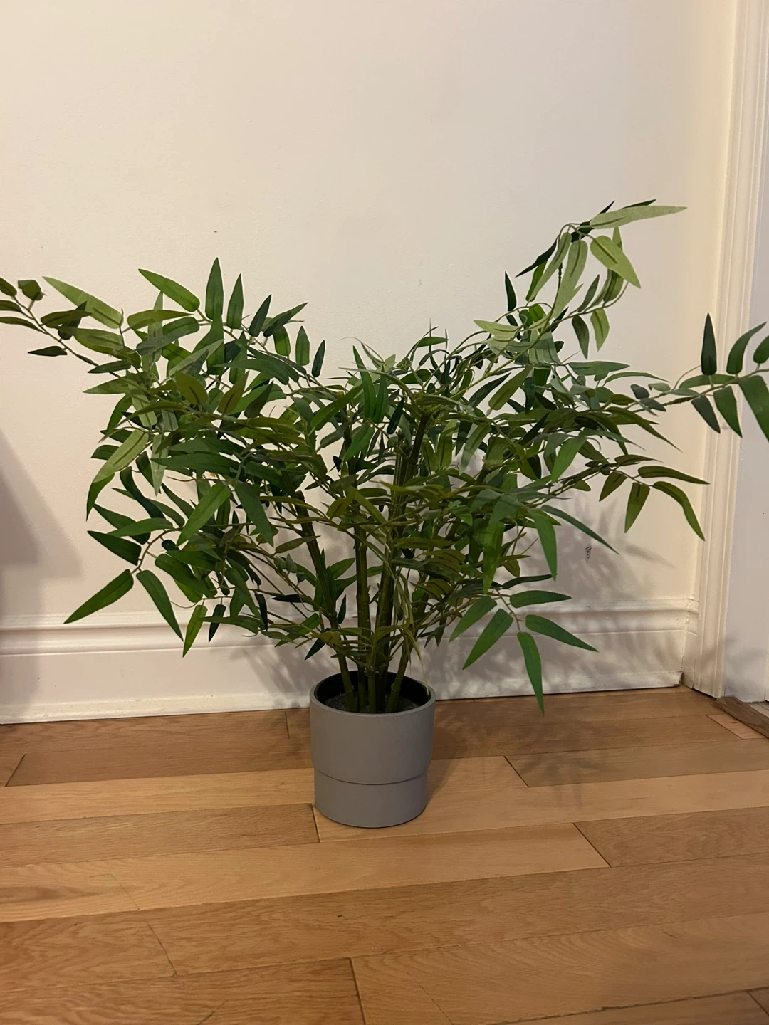 Selling a small IKEA artificial bamboo plant. Comes with a minimal/modern grey IKEA pot (plastic).