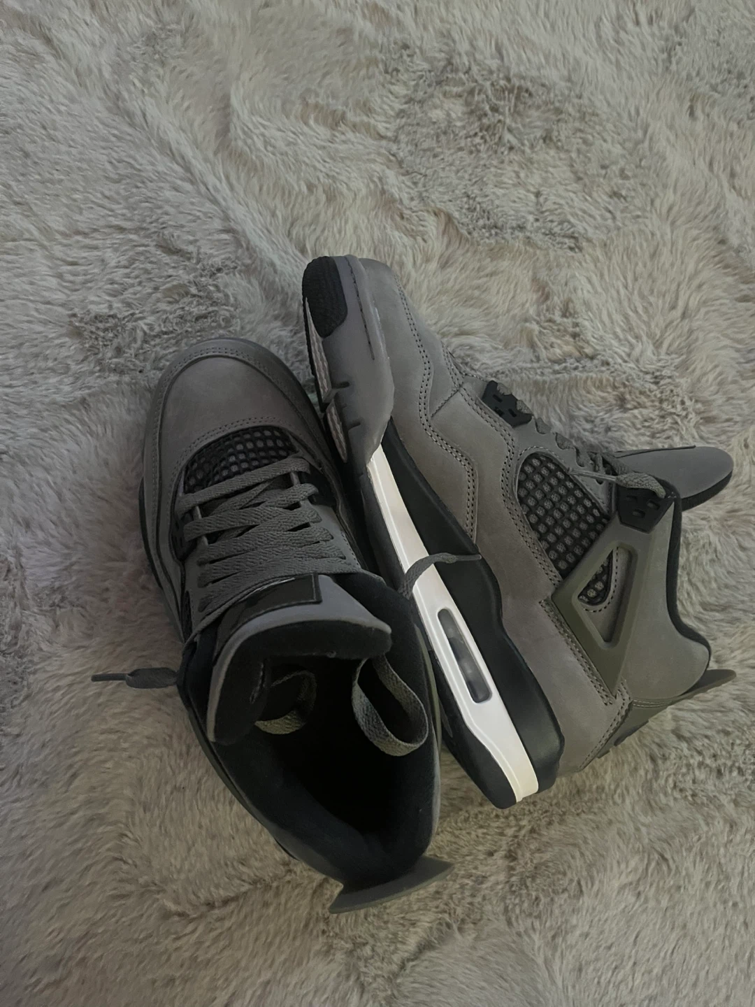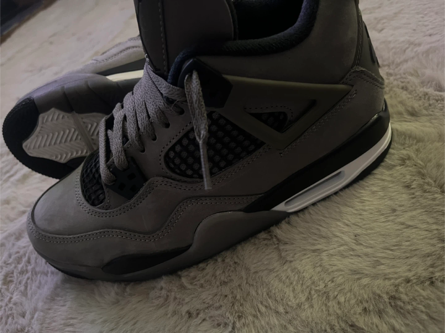 Selling a pair of Air Jordan 4 Retro in a stylish grey colour. These shoes are in great condition and ready for a new owner. Perfect for adding a touch of classic style to your wardrobe!