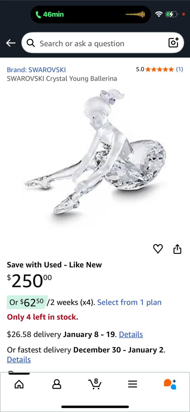 Selling a beautiful Swarovski Crystal Young Ballerina figurine! It's in excellent condition and comes with the original box. This figurine is a lovely addition to any collection or a thoughtful gift for a ballet enthusiast, open to reasonable offers.