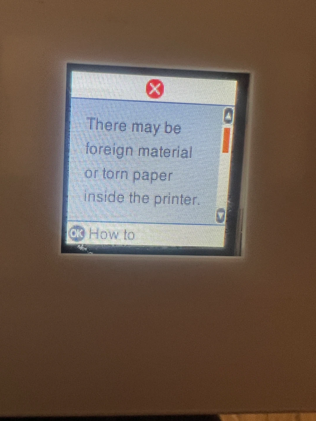 Selling an Epson EcoTank ET-2800 printer. The display screen indicates that there may be foreign material or torn paper inside the printer, It seems like an easy fix I just don’t have the time to do so.