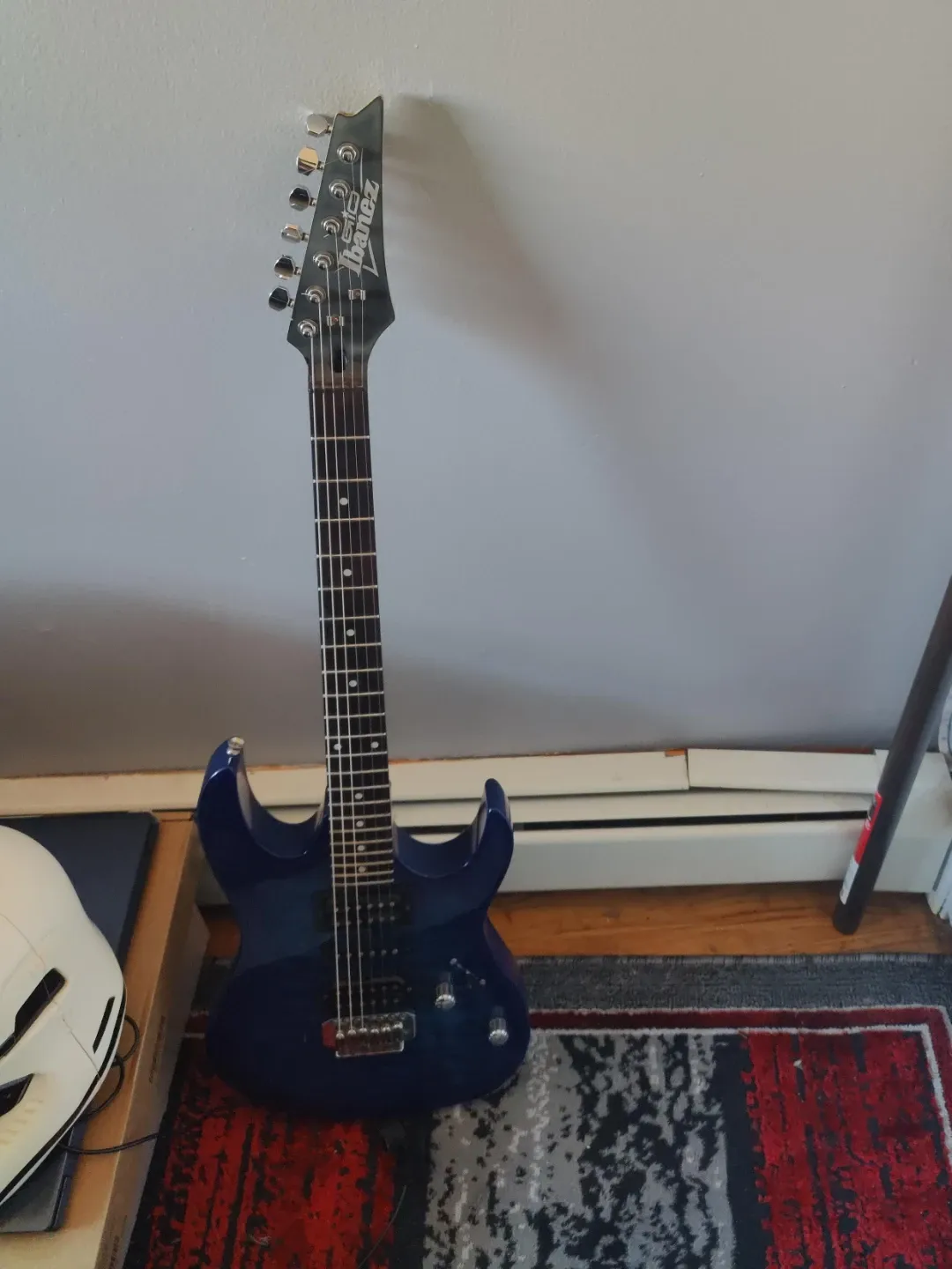 Selling an Ibanez Gio electric guitar in blue! It's in good condition and ready for a new player. Perfect for someone looking to start learning or upgrade their current instrument. Feel free to ask any questions.