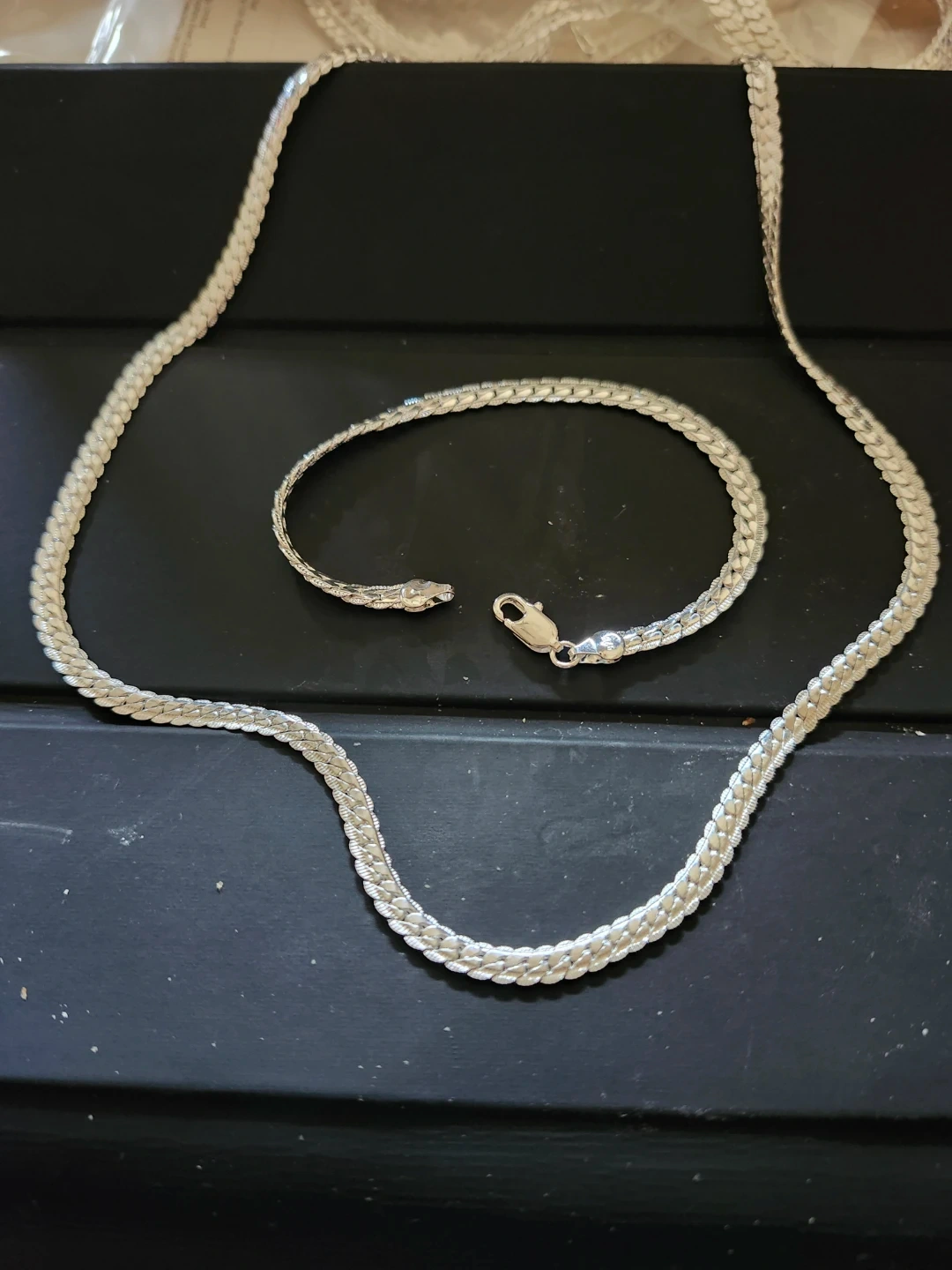 Buy & SellSterling Silver 925 Chain & Bracelet SetSterling Silver 925 Chain & Bracelet Set$80Selling a matching chain and bracelet set made of sterling silver 925. 20 inch necklace 8 inch bracelet Combined weight 25.69 grams 5mmConditionNewWHERE TO MEETIslington/DixonView MapSELLERverifiedAngieKingsview Village43330 reviews1 chats·1 favorites·17 viewsSEND CHAT TO SELLERHi Angie! I’m interested in your listing.Hi Angie! I’m interested in your listing.Get the Karrot app to chatSign In to chat