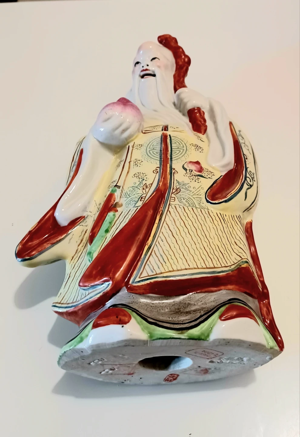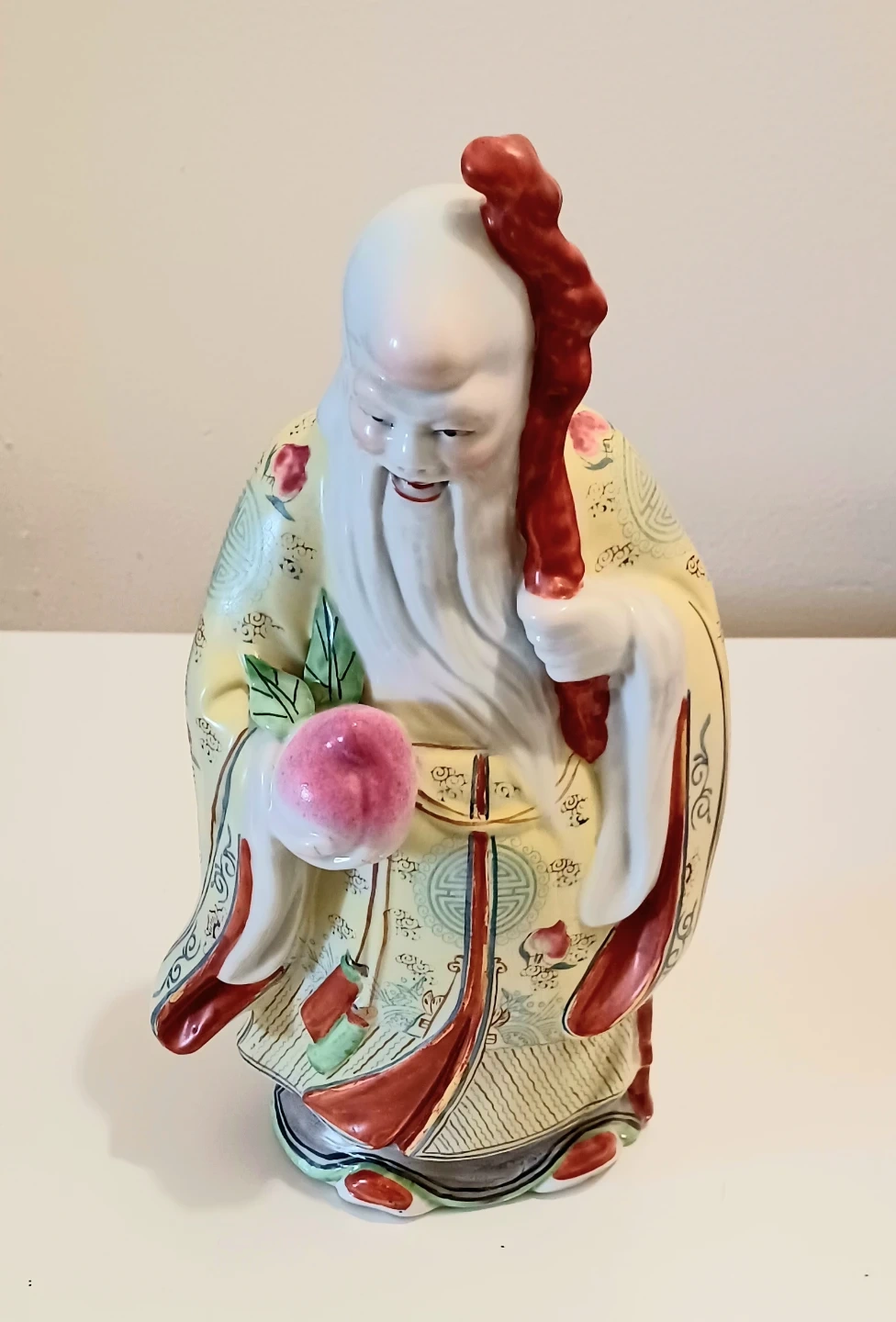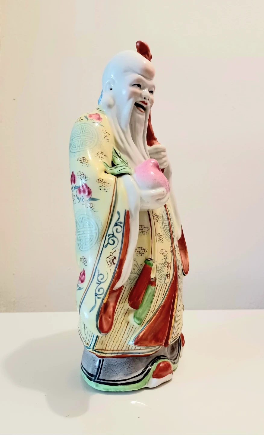 Famillie Rose Chinese, Hand Painted Porcelain Statue, depicting one of the Fu Lu Shou (also known as Sanxing ).