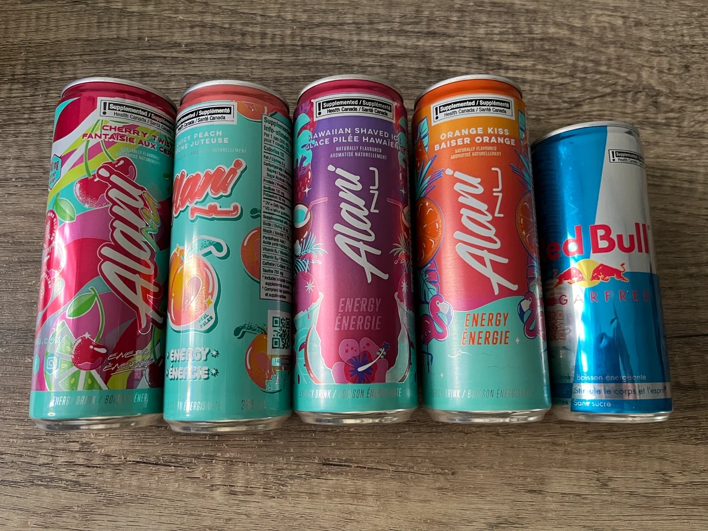 Take all 5 for $10 or $2.50 each. Sugar-free Red Bull and a variety of Alani Nu flavoured energy drinks.