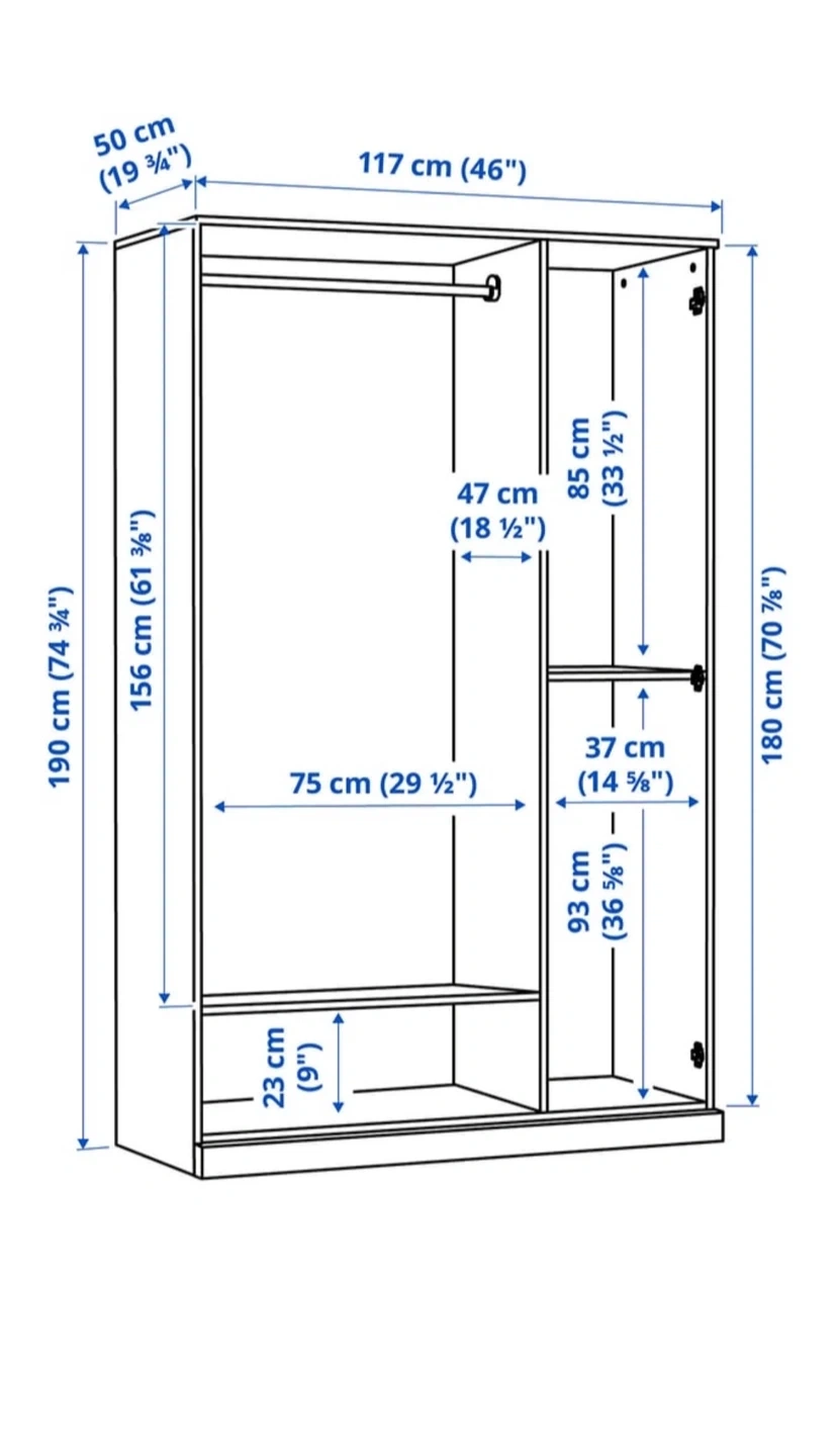 - DimensionsW 117 x D 50 x H 190 cm (46 x 19.75 x 74.75”)