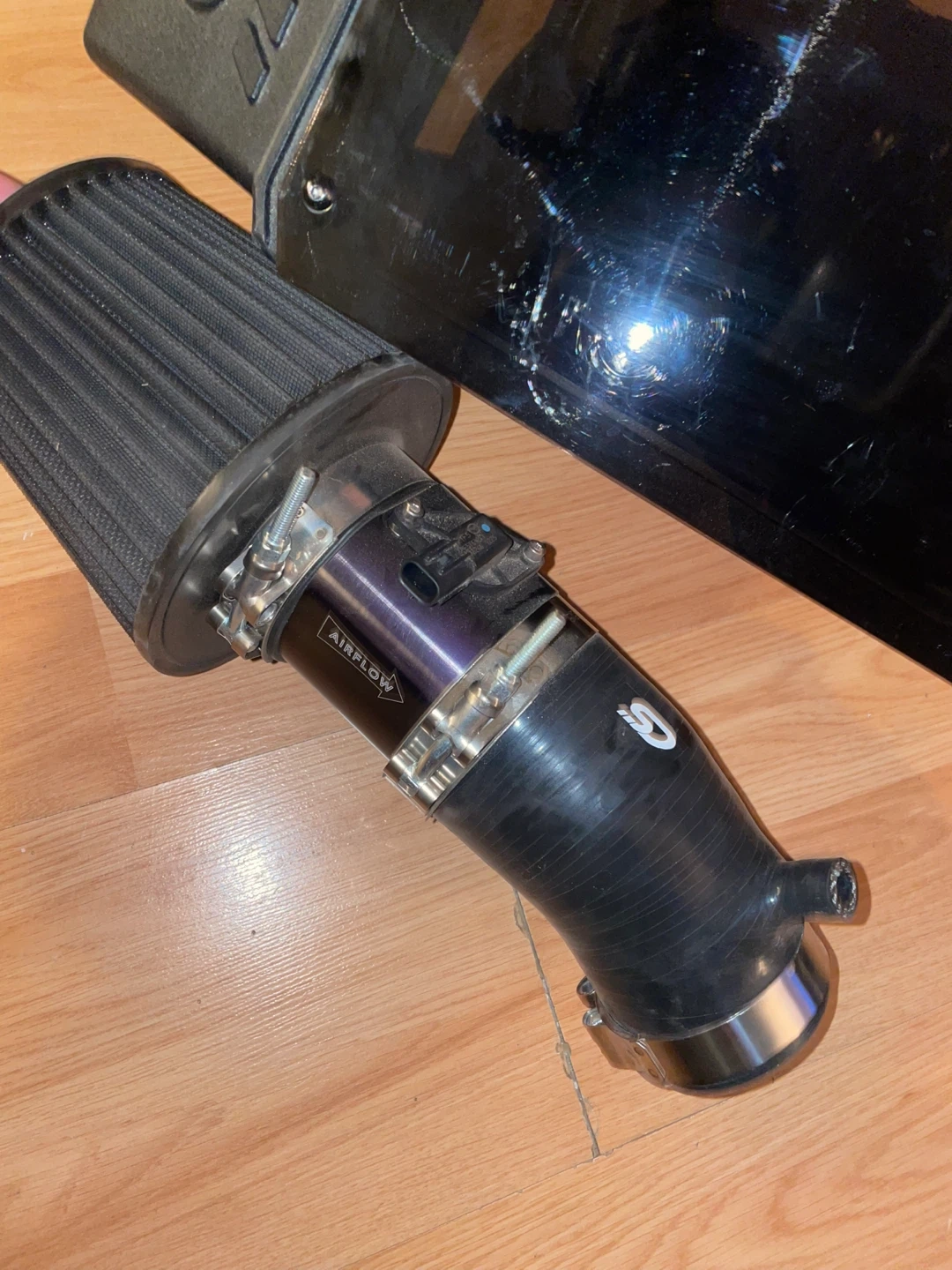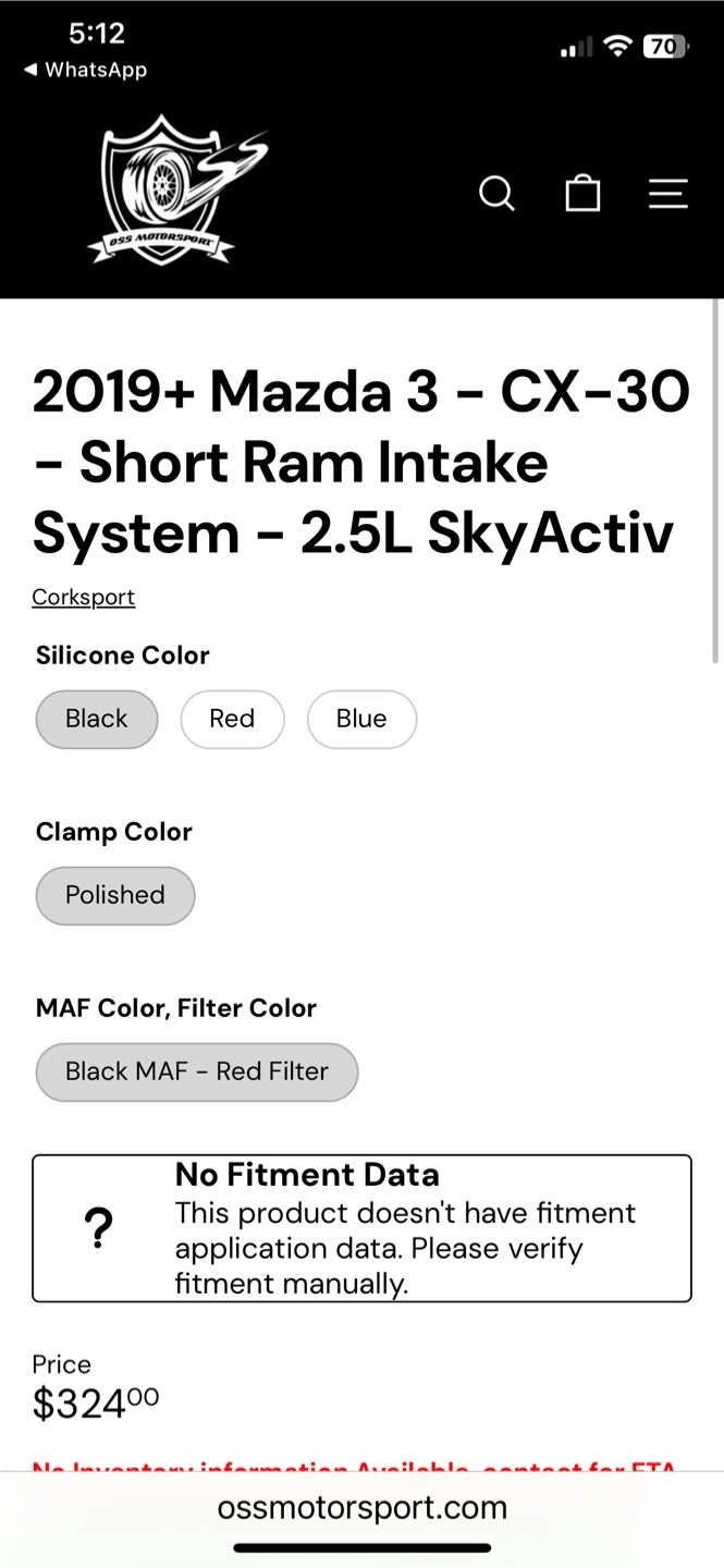 Selling a CorkSport Short Ram Intake System for a 2019+ Mazda 3 or CX-30 with a 2.5L or 2L SkyActiv engine. The silicone color is black, and the clamp color is polished. It is in good condition and ready to install!