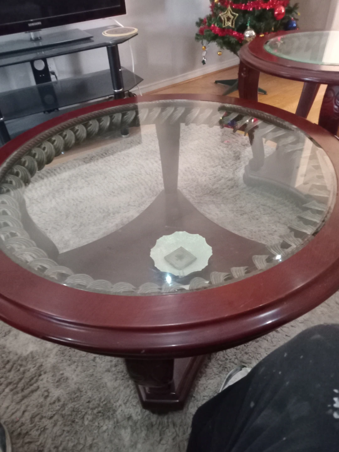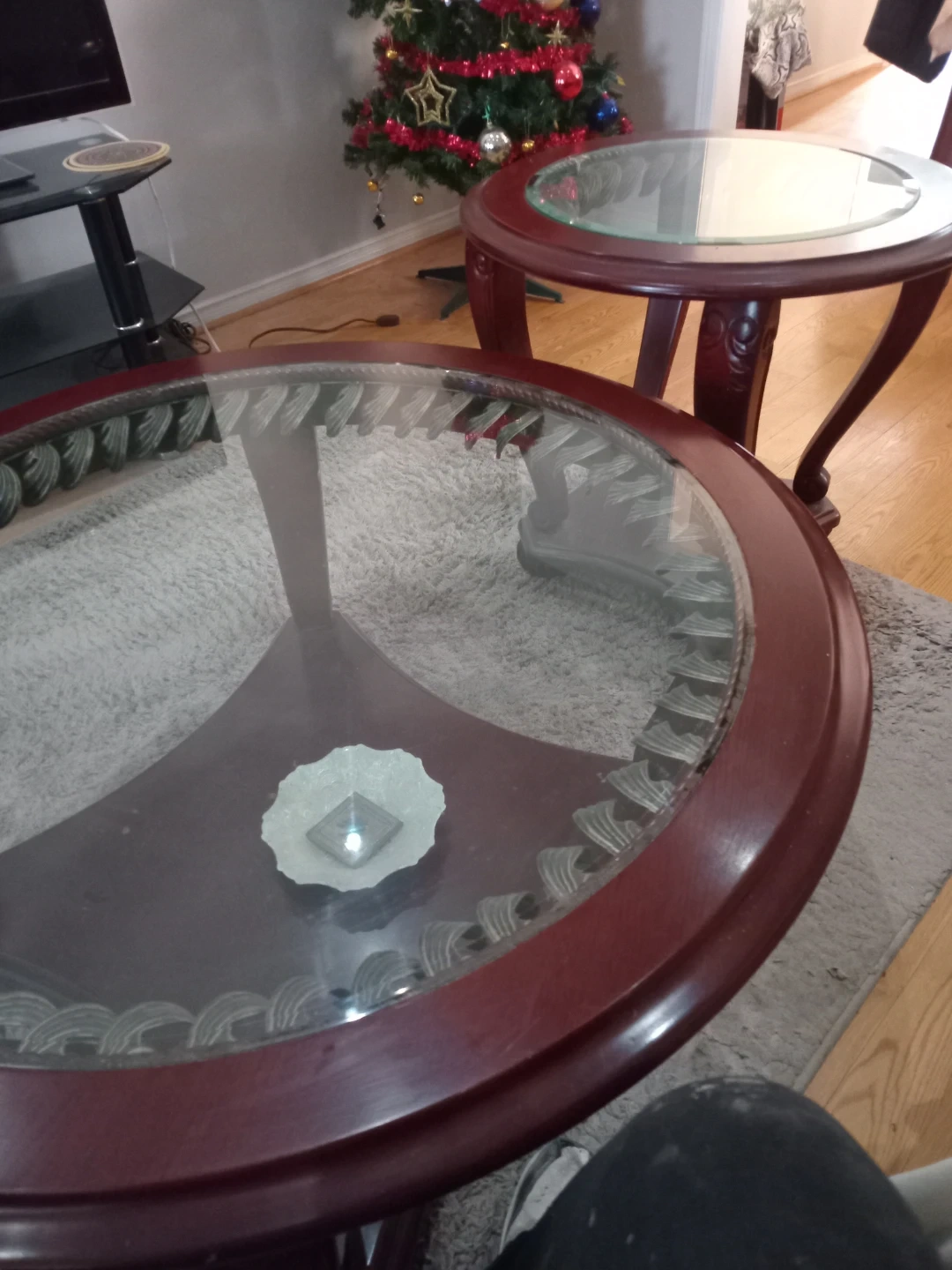 Selling a set of round glass top coffee tables. They're in great shape and would look lovely in any living room! The dark wood finish adds a touch of elegance. Call Mr Toor 416 716 6463