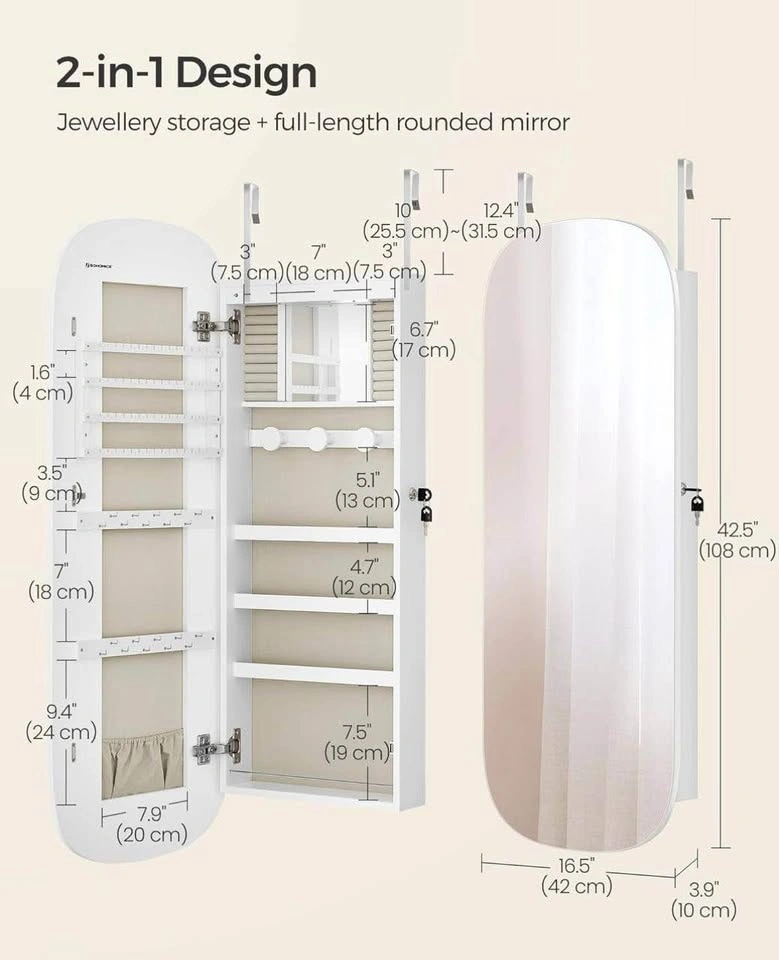 SONGMICS LED Jewelry Organizer – Brand New (White/Greige)