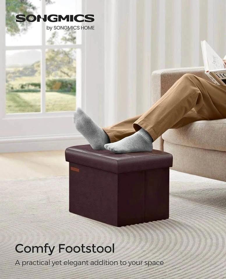 Add style, comfort, and smart storage to your space! This SONGMICS small folding storage ottoman is brand new, never used and perfect as a footrest, extra seat, or hidden storage solution.