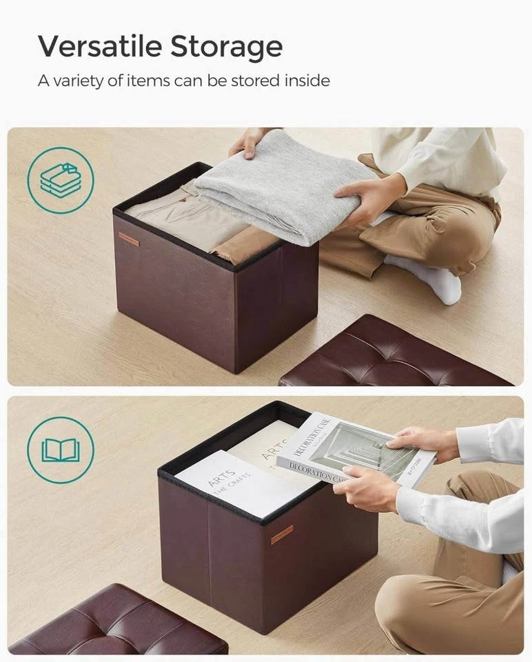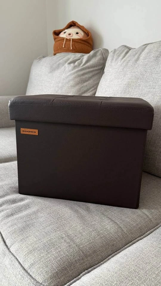 Add style, comfort, and smart storage to your space! This SONGMICS small folding storage ottoman is brand new, never used and perfect as a footrest, extra seat, or hidden storage solution.