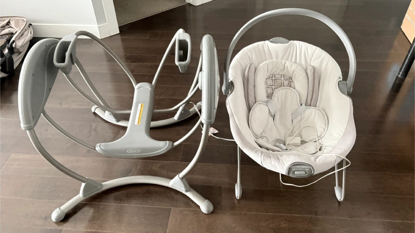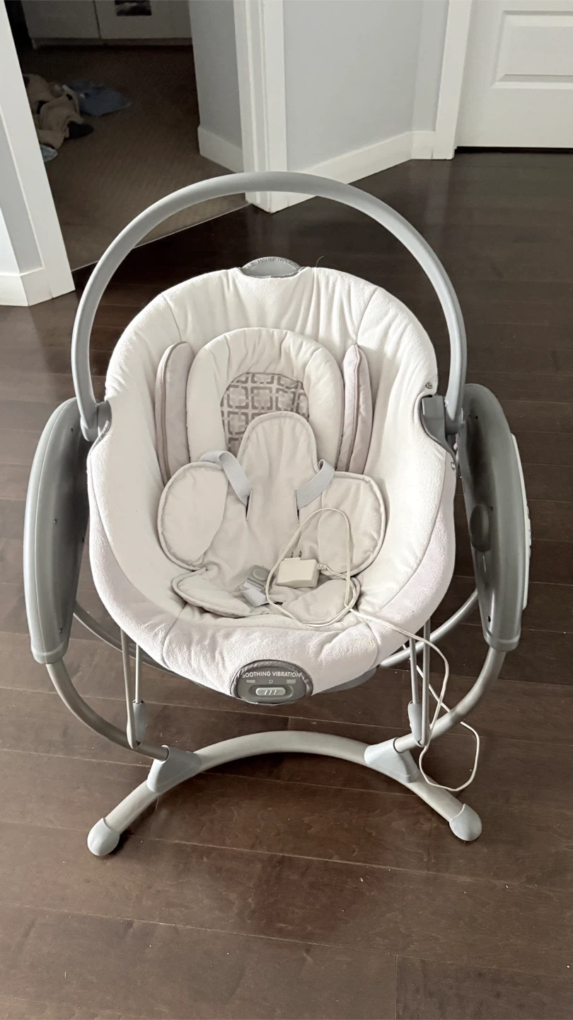 Selling a gently used Graco baby swing. It features soothing vibration to help calm your little one. The swing is in great condition and ready for a new family!