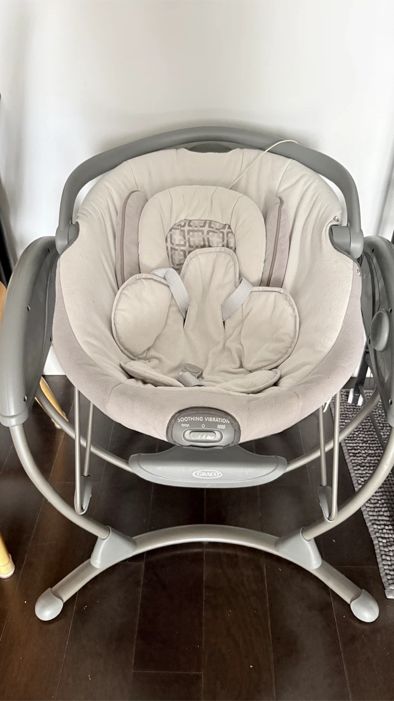 Selling a gently used Graco baby swing. It features soothing vibration to help calm your little one. The swing is in great condition and ready for a new family!