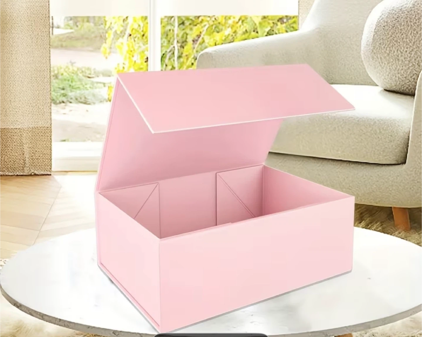 Selling a collapsible gift box! It's perfect for presenting gifts or storing items neatly. The box is easy to assemble with its simple press, unfold, merge, and finish steps. Great for any occasion!