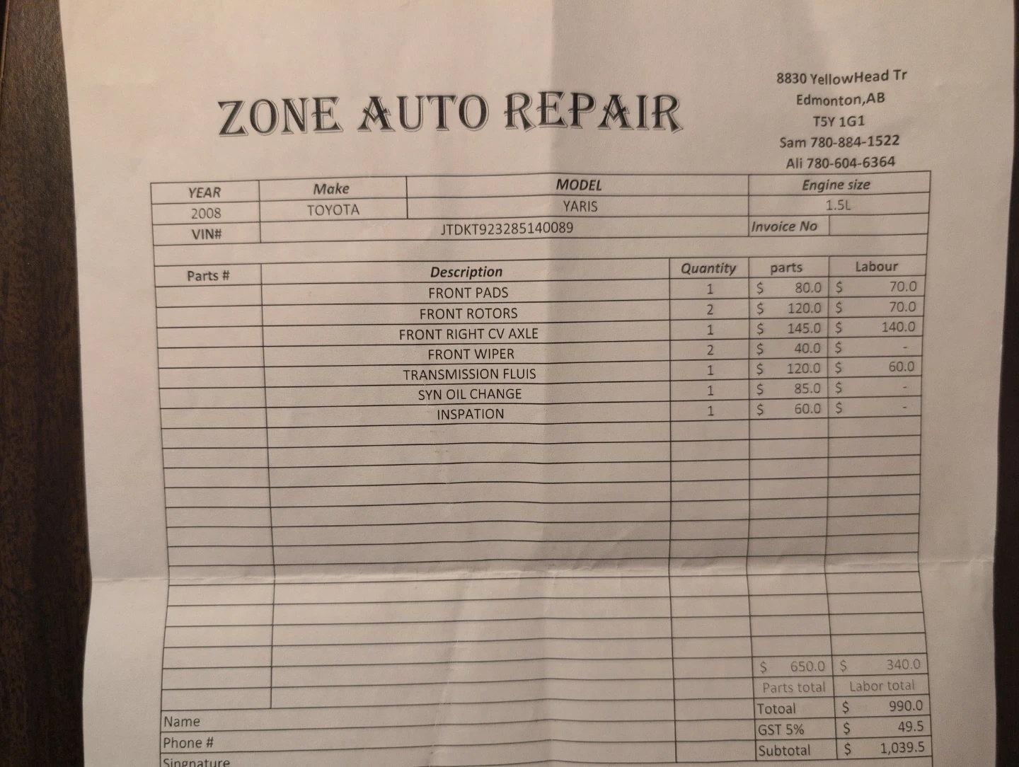 Work done recently (see photos)