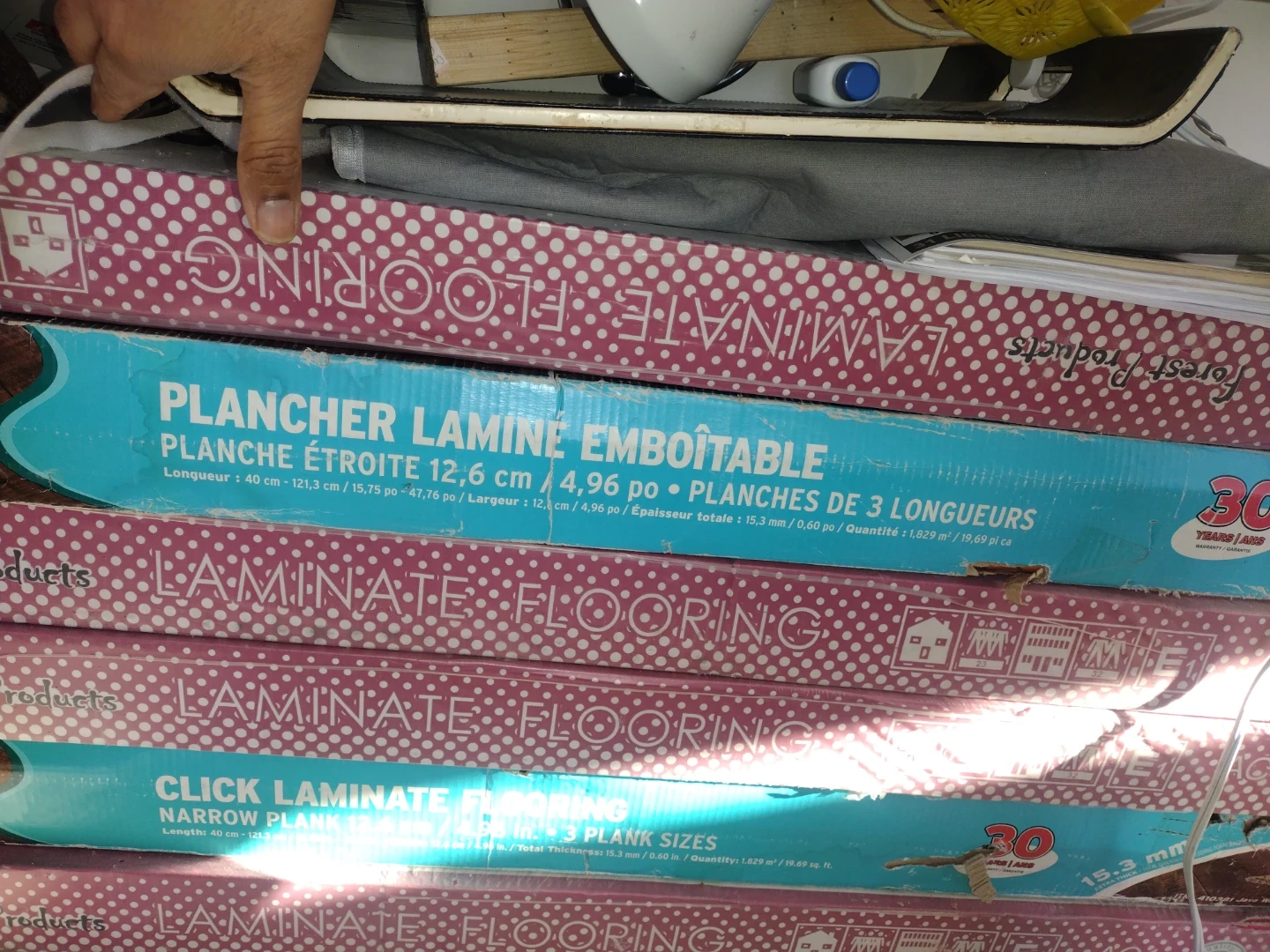 Selling laminate flooring planks. They are click laminate flooring, narrow plank laminate flooring, 3 plank sizes. The length is 40 cm (15.75 in) / 12.1 cm / 15.75 po = 47.76 po / 12.1 cm / 4.96 po. Thickness: 15.3 mm / 0.66 in / 0.66 po / Quantity: 1.829 m² / 19.69 sq ft