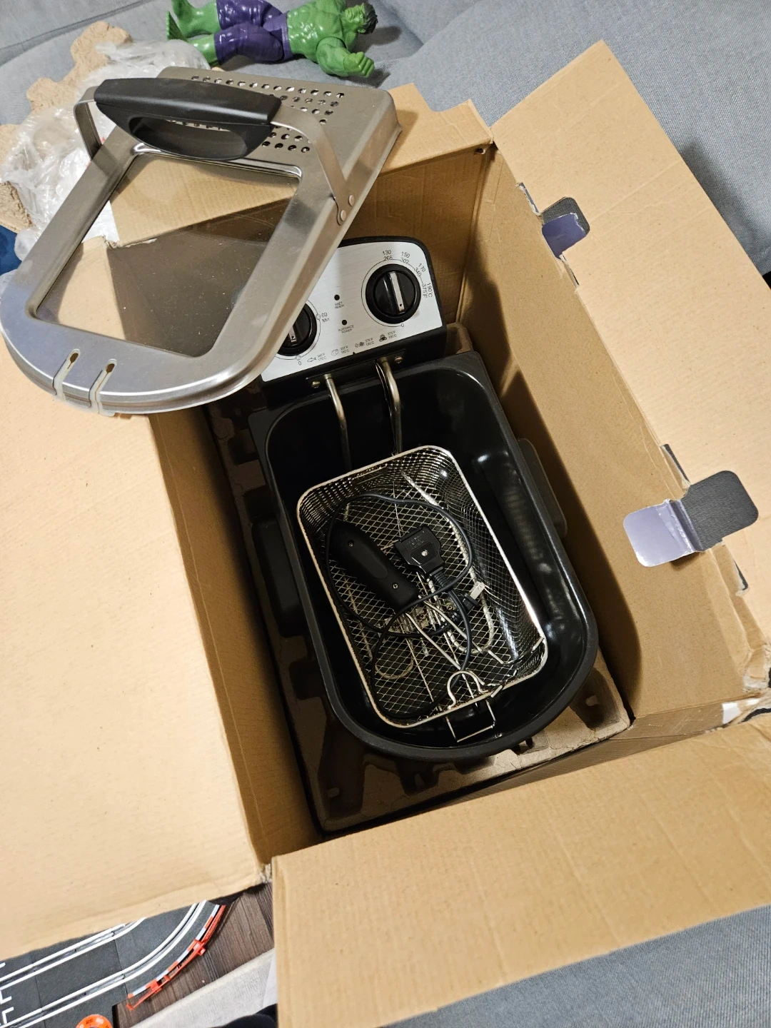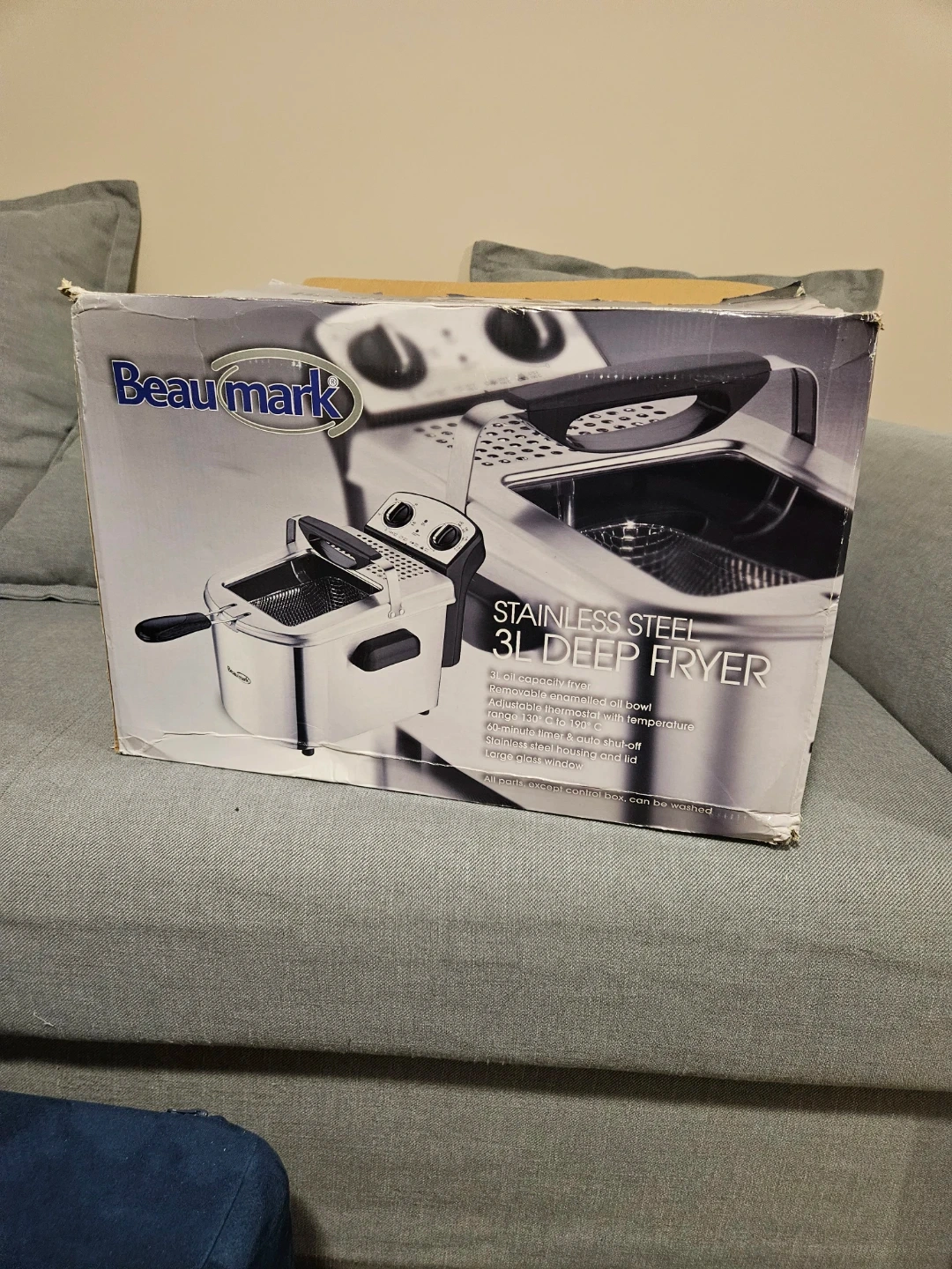 Selling a Beaumark 3L deep fryer in stainless steel! It comes with all the components and the original box. It features a 3L oil capacity, adjustable thermostat, and automatic shut-off for safety. The basket and frying bowl are dishwasher safe for easy cleaning!