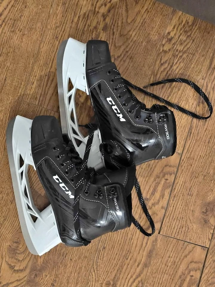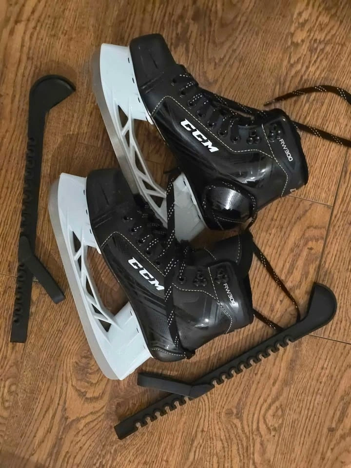 Barely used ice skates. Used less than 10 times, blade never been sharpened. Comes in original box and with extra blade protectors.