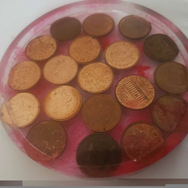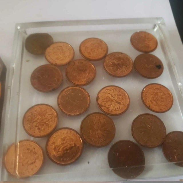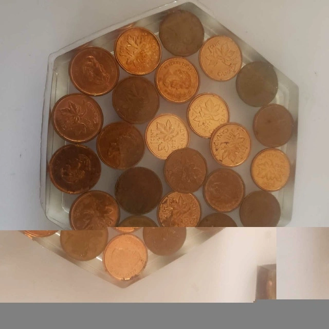 Up for sell we have a choice of 1 of 3 epoxy Canadian copper penny coster in new condition 2 of them as a American penny in it. Asking $25 each all 3 for $65 pick up on Old Richmond Road Nepean thank you