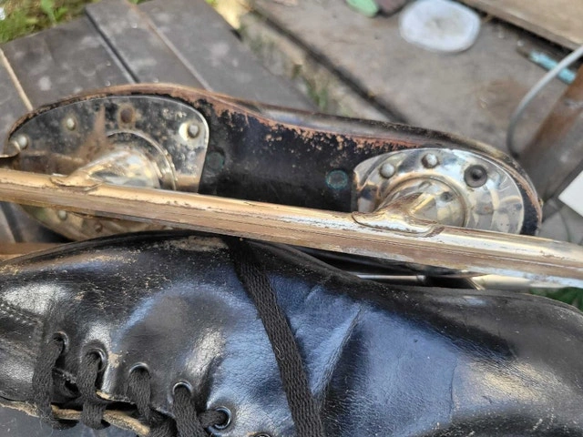 For sale is this VINTAGE BLACK SPEED SKATING SKATES size 7-8 man or 8-10 Woman in good used condition the blade is nice and sharpen can still be used as intended or just a conversion piece asking $20 pick up on beaverbrook lane Kanata thank you