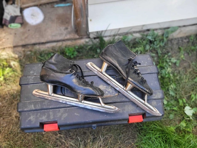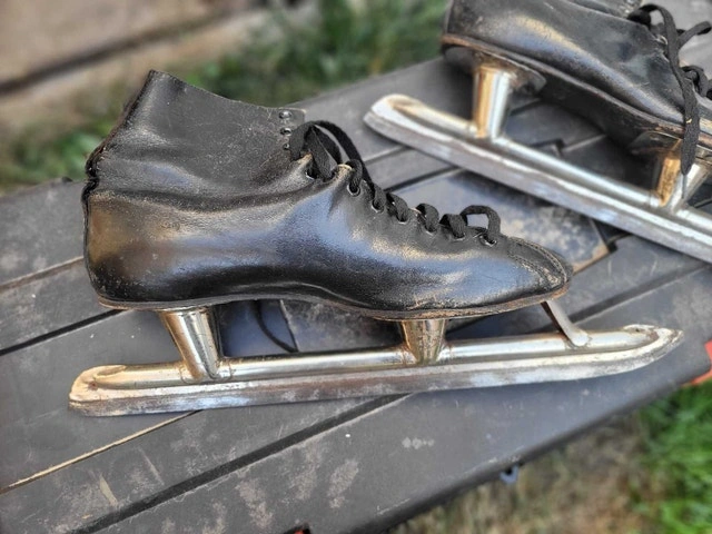 For sale is this VINTAGE BLACK SPEED SKATING SKATES size 7-8 man or 8-10 Woman in good used condition the blade is nice and sharpen can still be used as intended or just a conversion piece asking $20 pick up on beaverbrook lane Kanata thank you
