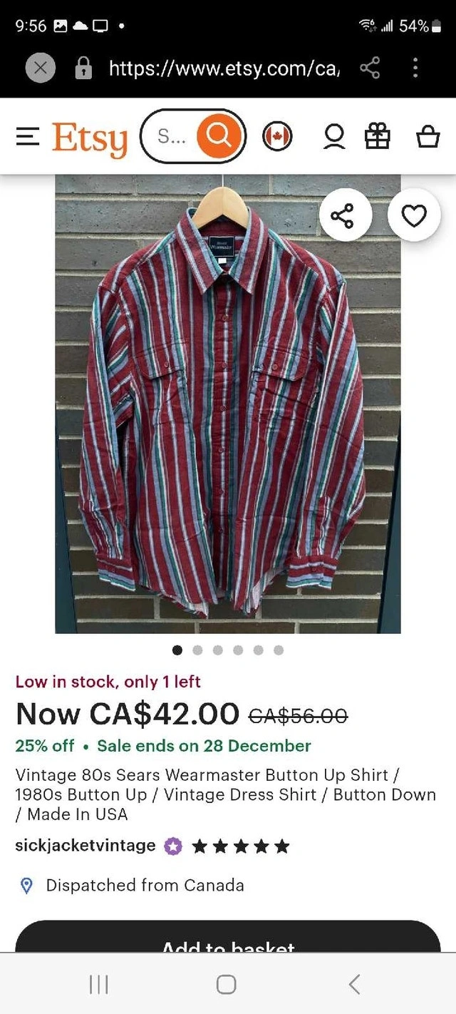 Vintage 80s Sears Wearmaster Button Up Shirt / 1980s Button Up / Vintage Dress Shirt / Button Down / Made In USA in size medium, Large and extra Large all in new condition. 1 LARGE IS FROM JUST IN AND 1 extra large BUT from COLUMBUS CLOTHING THE STRIPPED BLUE , RED AND GREEN ARE FROM SEARS asking $30 each the 2 photo with the Shirt on display was past and copied from Etsy pick up on beaverbrook lane Kanata . Size Large (Length 31” Chest 22”)