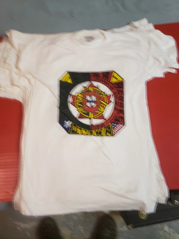 Up for sale we have some Vintage 1974 Ottawa T Shirts They Read ( O povo unido Jamais Sera Vencido Abril 25 1975 To Celebrate The Carnation Revolution (Portuguese: Revolução dos Cravos), also known as the 25 April (Portuguese: 25 de Abril), was initially a 25 April 1974 military coup in Lisbon which overthrew the authoritarian Estado Novo regime.[1] The revolution began as a coup organised by the Armed Forces Movement (Portuguese: Movimento das Forças Armadas, MFA), composed of military officers who opposed the regime, but it was soon coupled with an unanticipated, popular civil resistance campaign. The revolution led to the fall of the Estado Novo, terminated the Portuguese Colonial War, and started a revolutionary process that would result in a democratic Portugal. Its name arose from the fact that almost no shots were fired, and Celeste Caeiro offered carnations to the soldiers when the population took to the streets to celebrate the end of the dictatorship; other demonstrators followed suit, and carnations were placed in the muzzles of guns and on the soldiers' uniforms.[2] In Portugal, 25 April is a national holiday (Portuguese: Dia da Liberdade, Freedom Day) which commemorates the revolution. Asking $5 each Pick up on Old Richmons Road in Nepean