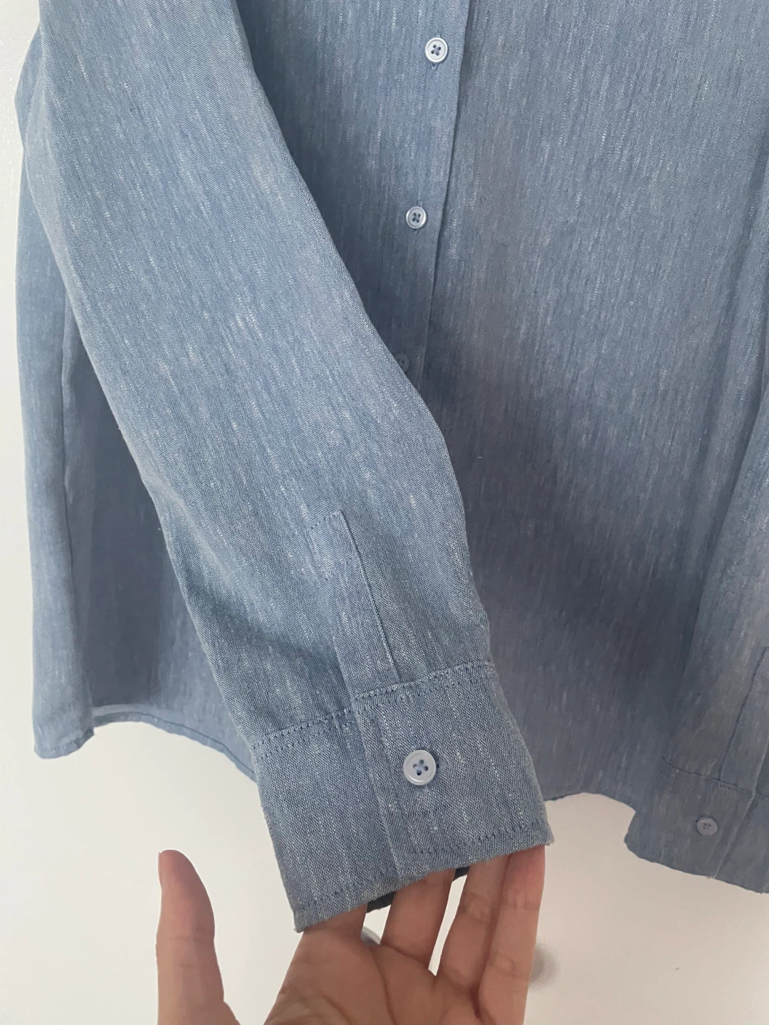 A nice blue button-down shirt from Primark! It's a size medium and in great condition. The material has a nice texture to it, perfect for a casual look
