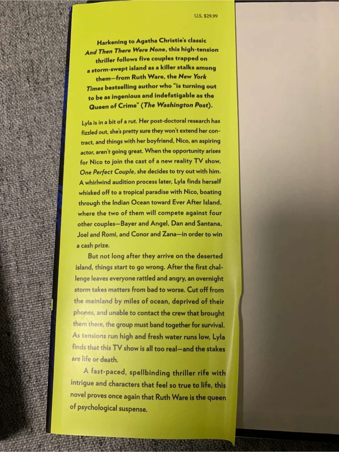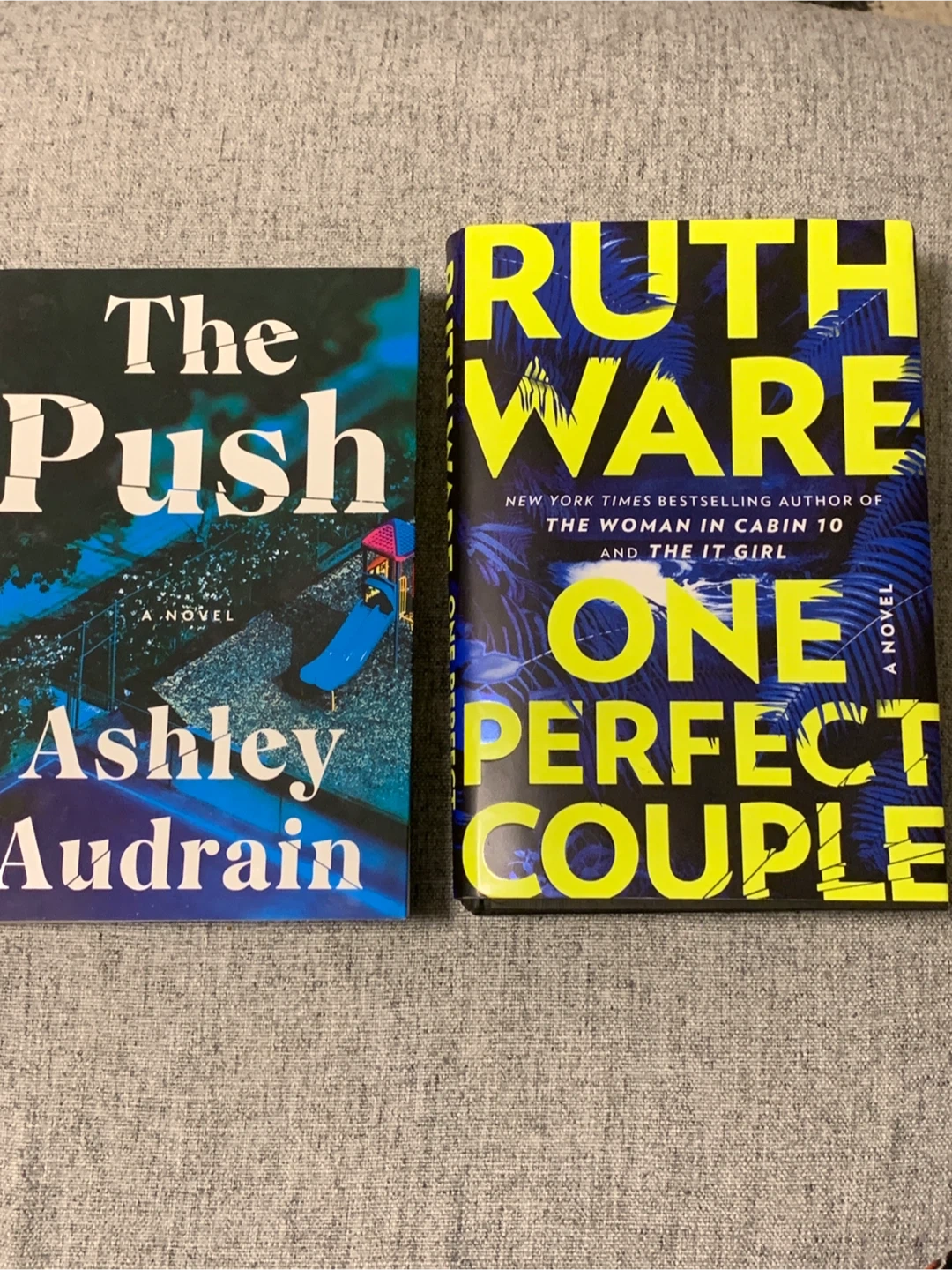 Selling two novels: "One Perfect Couple" by Ruth Ware and "The Push" by Ashley Audrain. Both are in great condition and would be a perfect addition to your bookshelf! "One Perfect Couple" is a tense, page-turning psychological drama, while "The Push" is a rare and extraordinary gift for readers