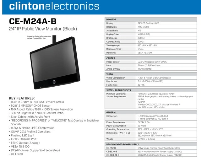 Clinton Electronics M24AB-C-WM Wall Mount Monitor – $150