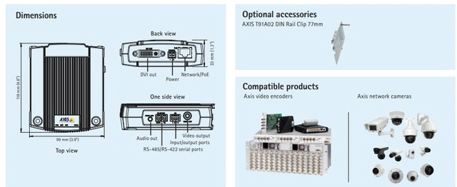 AXIS P7701 Video Decoder – $350 Standalone network video decoder designed to display live video from Axis network cameras and encoders directly on digital or analog monitors without a PC. It supports multiple video formats, audio output, and Power over Ethernet, making it a flexible choice for public view monitors and surveillance display applications.