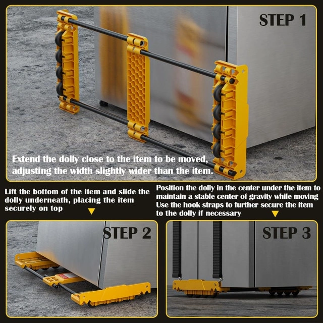 LOAD CAPACITY: Heavy-duty construction supports up to 2000 lbs, equipped with dual-row, 8-wheel heavy-duty casters designed for superior weight distribution and smooth movement. Perfect for transporting large household appliances and equipment.