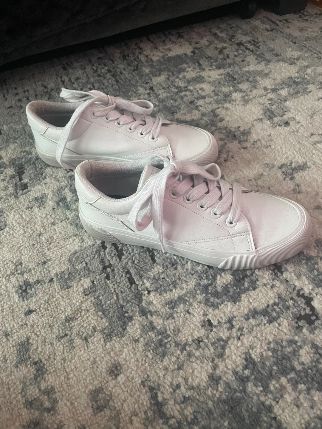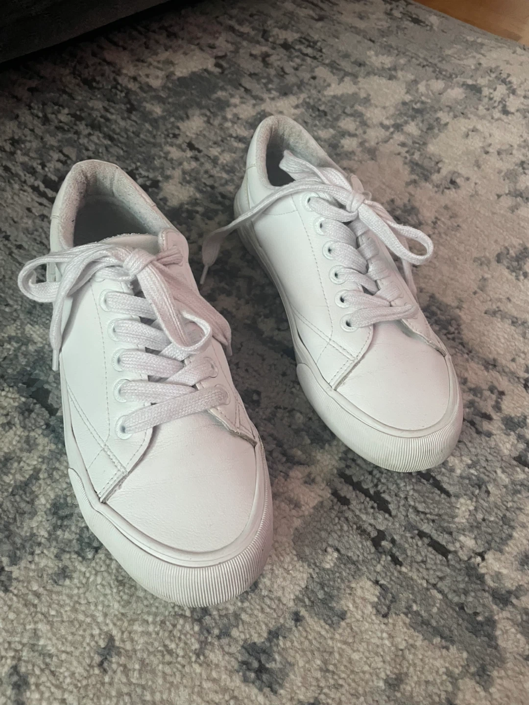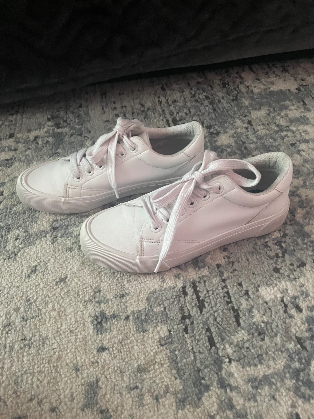 Selling these white leather sneakers! They're in great condition and ready for a new owner. Perfect for casual wear or dressing up an outfit.