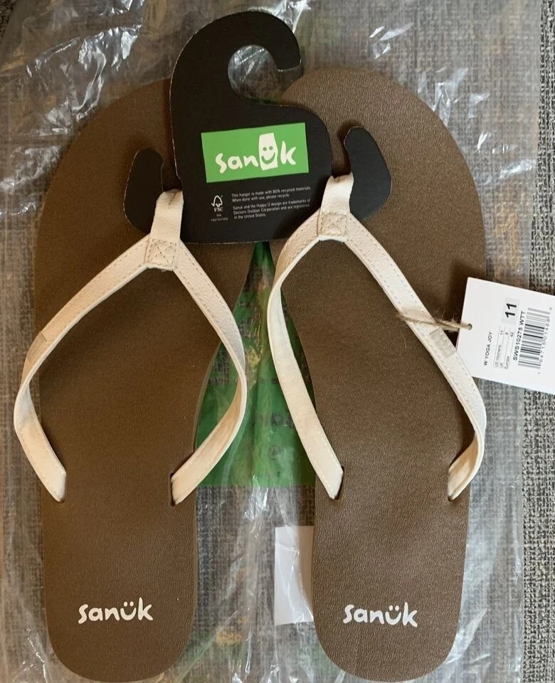 These brand new Sanuk Yoga Joy flip flops are super comfy and ready for your next adventure! They are a women's size 11 and feature a stylish design. Perfect for everyday wear or a trip to the beach