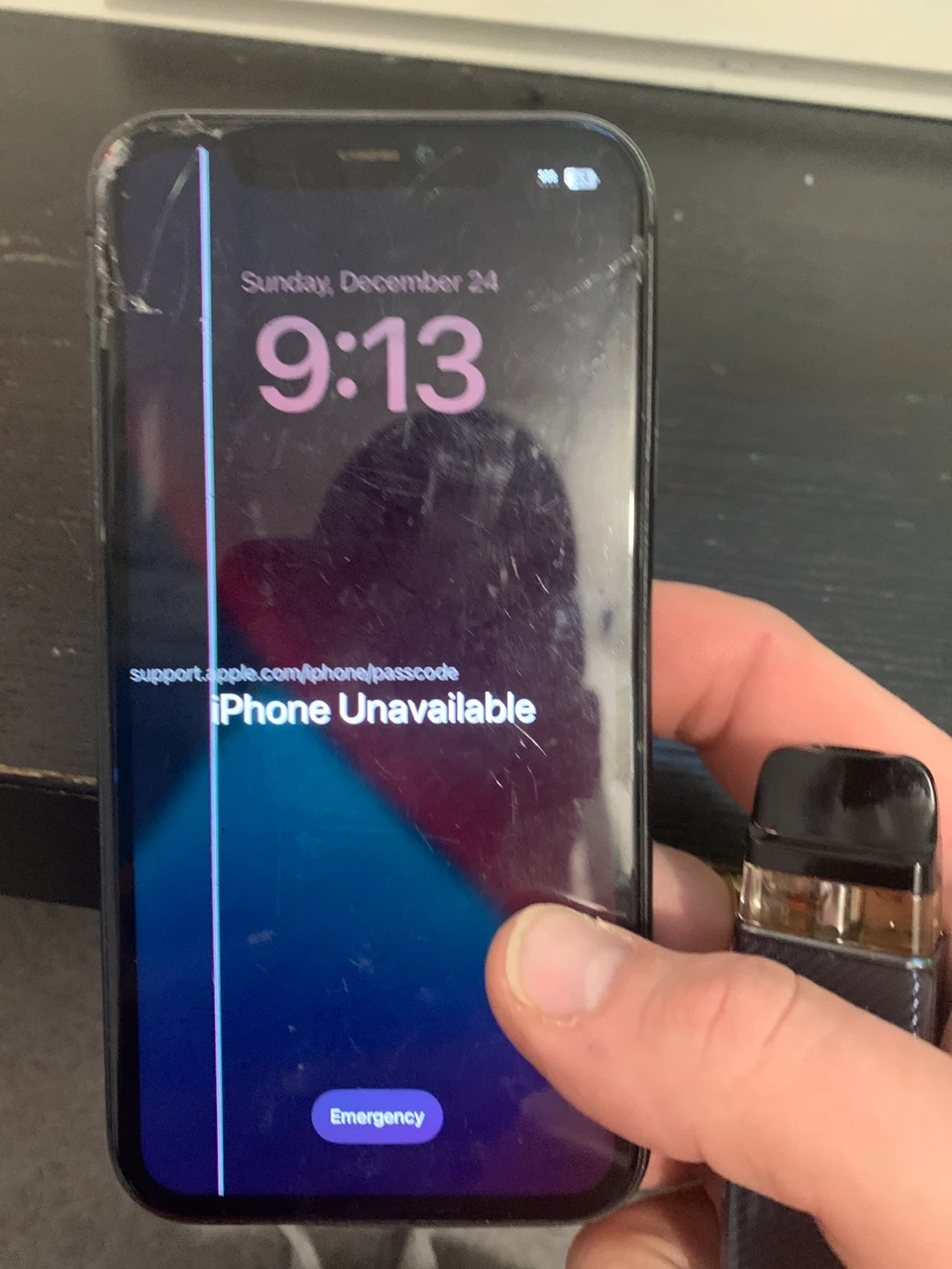 Selling a cracked iPhone. It's definitely seen better days, as you can see. The screen is cracked and the back is shattered. Selling as is. Parts. iCloud locked