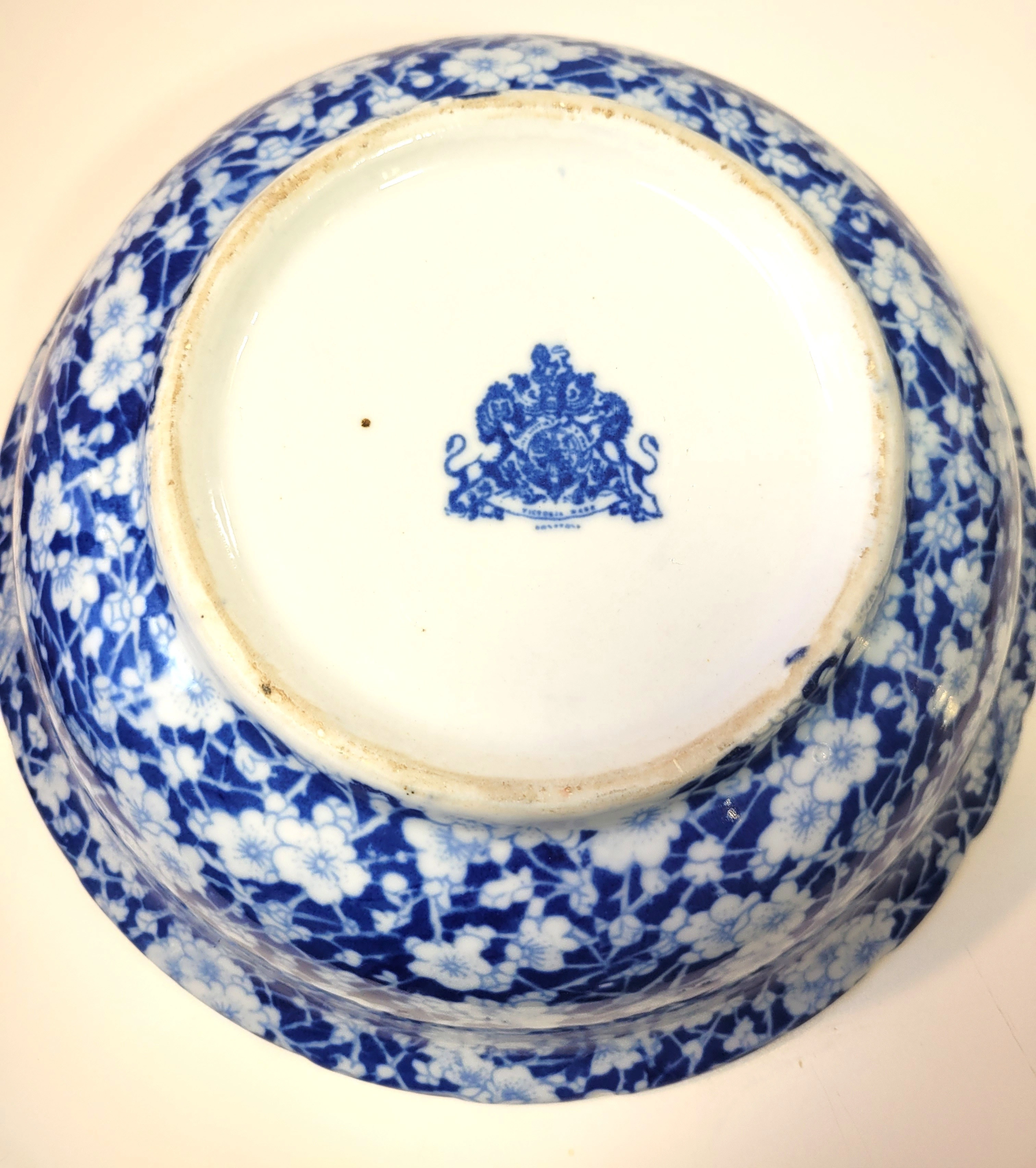 Markings: The underside of both pieces features the large blue Victoria Ware Ironstone backstamp with the Royal Coat of Arms (Lion and Unicorn).
