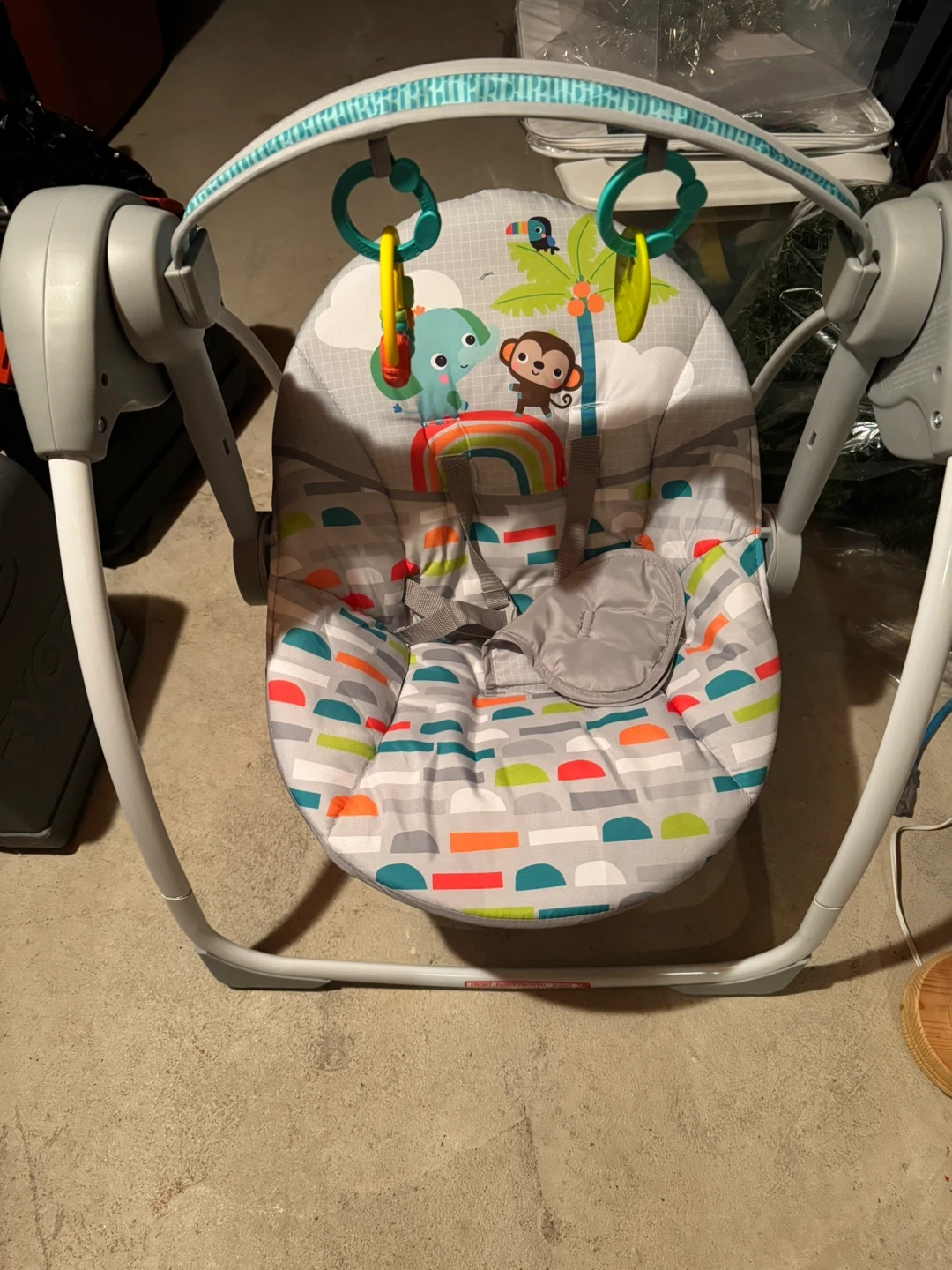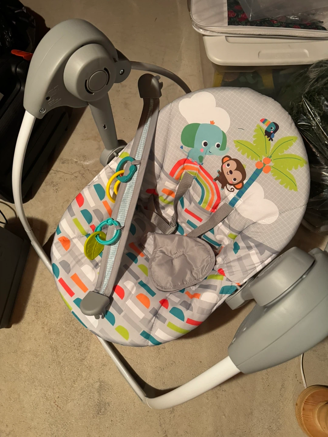 This Ingenuity ConvertMe Swing-2-Seat is in great condition and ready for a new little one! It features a cute, colourful design with animal characters. Perfect for keeping your baby comfortable and entertained!