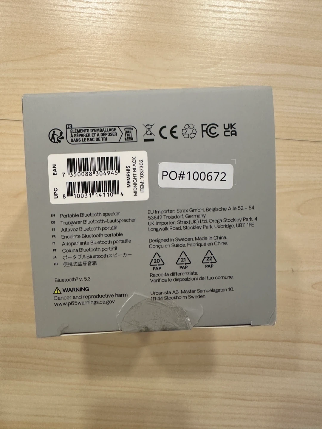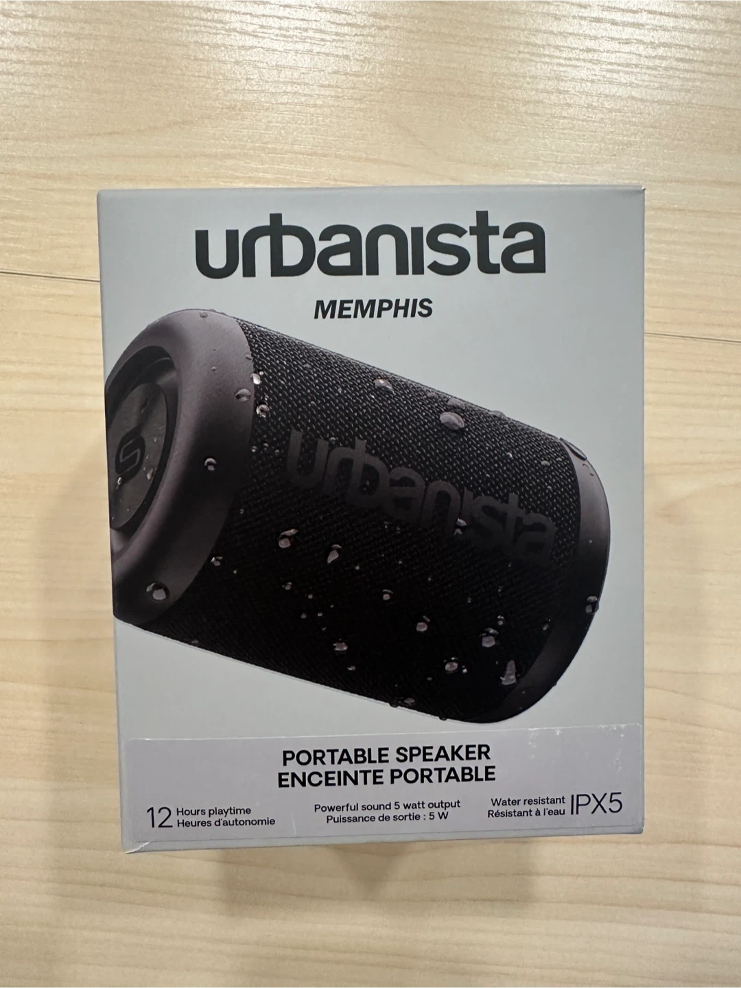 Selling a portable Bluetooth speaker by Urbanista, the Memphis model in Midnight Black. It's water resistant with an IPX5 rating, so it's durable for outdoor use. It has 12 hours of playtime and a powerful 5-watt output. Comes with the original box