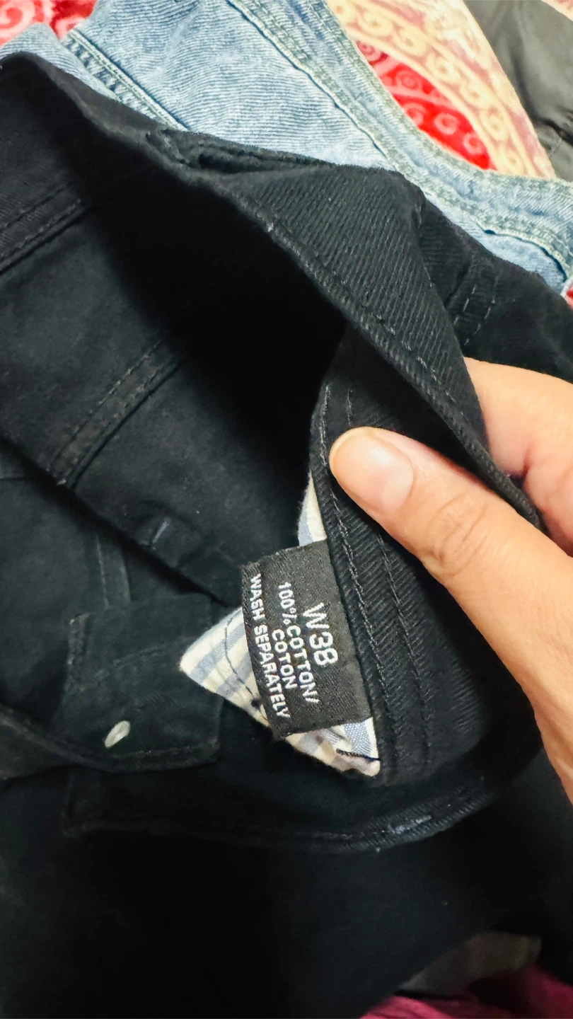 Selling a pair of Zara Basic Denim Dept jeans in black. The size is W38 and they are made of 100% cotton. They're in good condition and ready for a new home! And 2 other with different brands same size