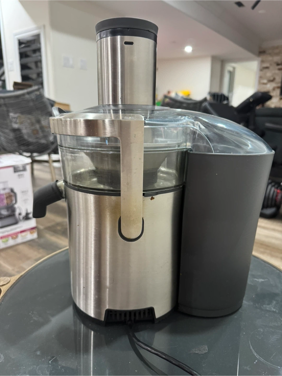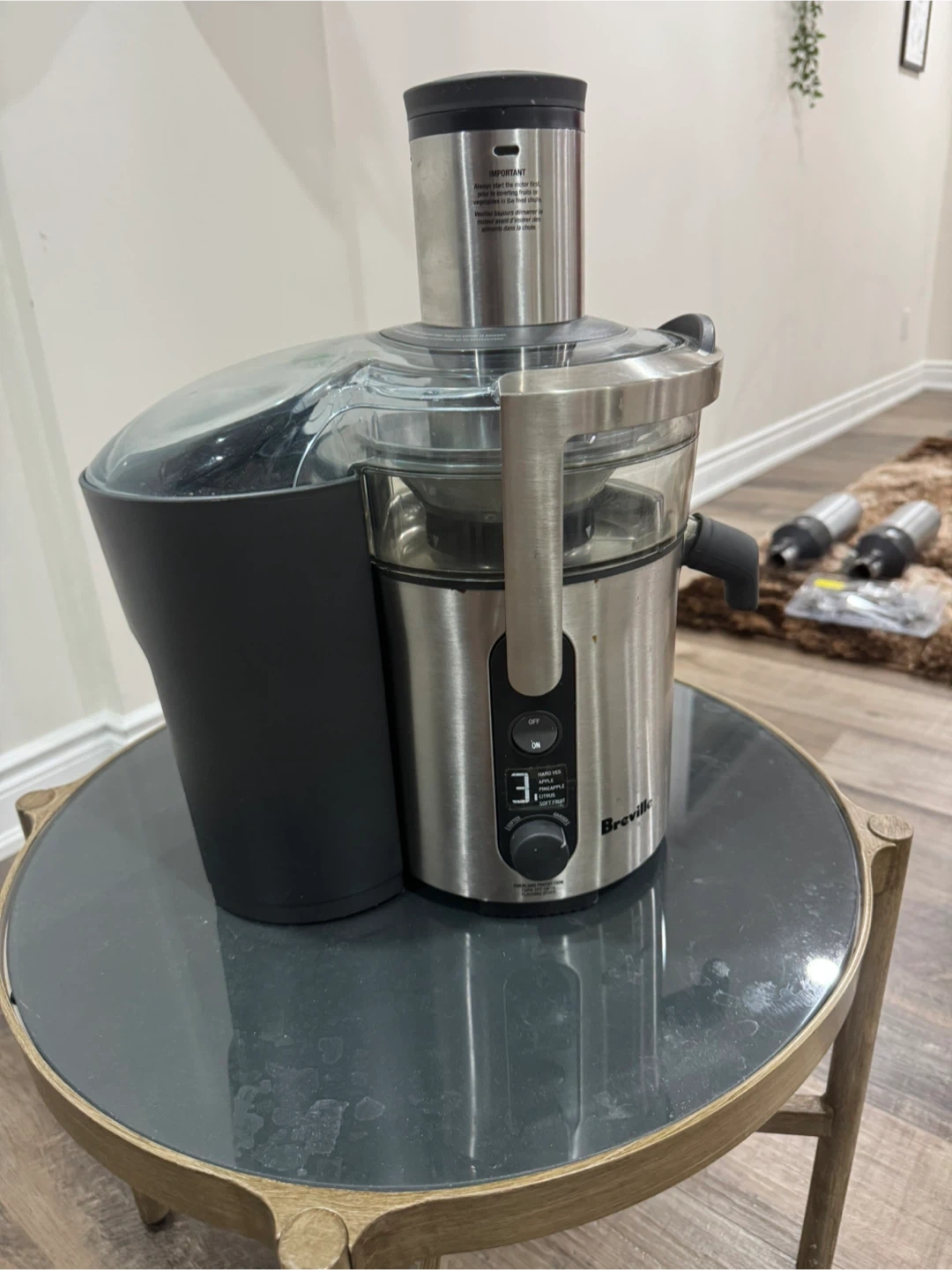 I'm selling a Breville Juice Fountain Cold juicer. This juicer is great for making fresh juice at home. It's in good condition and ready for a new owner. It features a cold spin technology to minimize damage to vitamins and minerals.