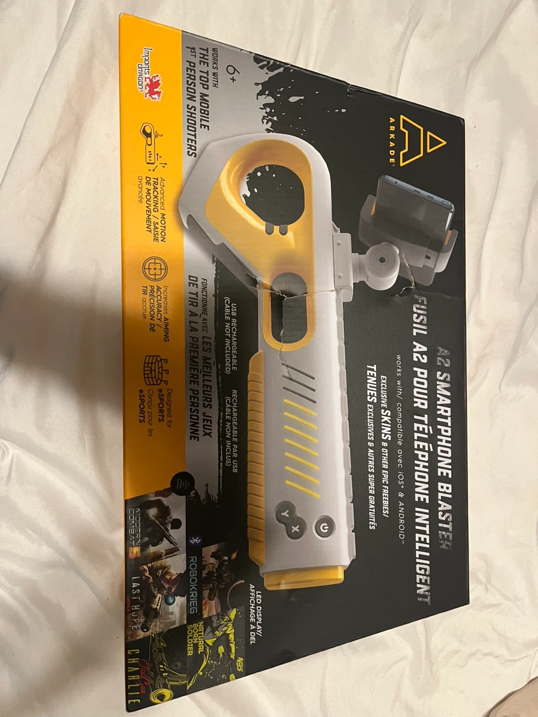 Selling an Arkade A2 Smartphone Blaster! It works with both iOS and Android phones. It's compatible with top mobile first-person shooter games. The box is included!