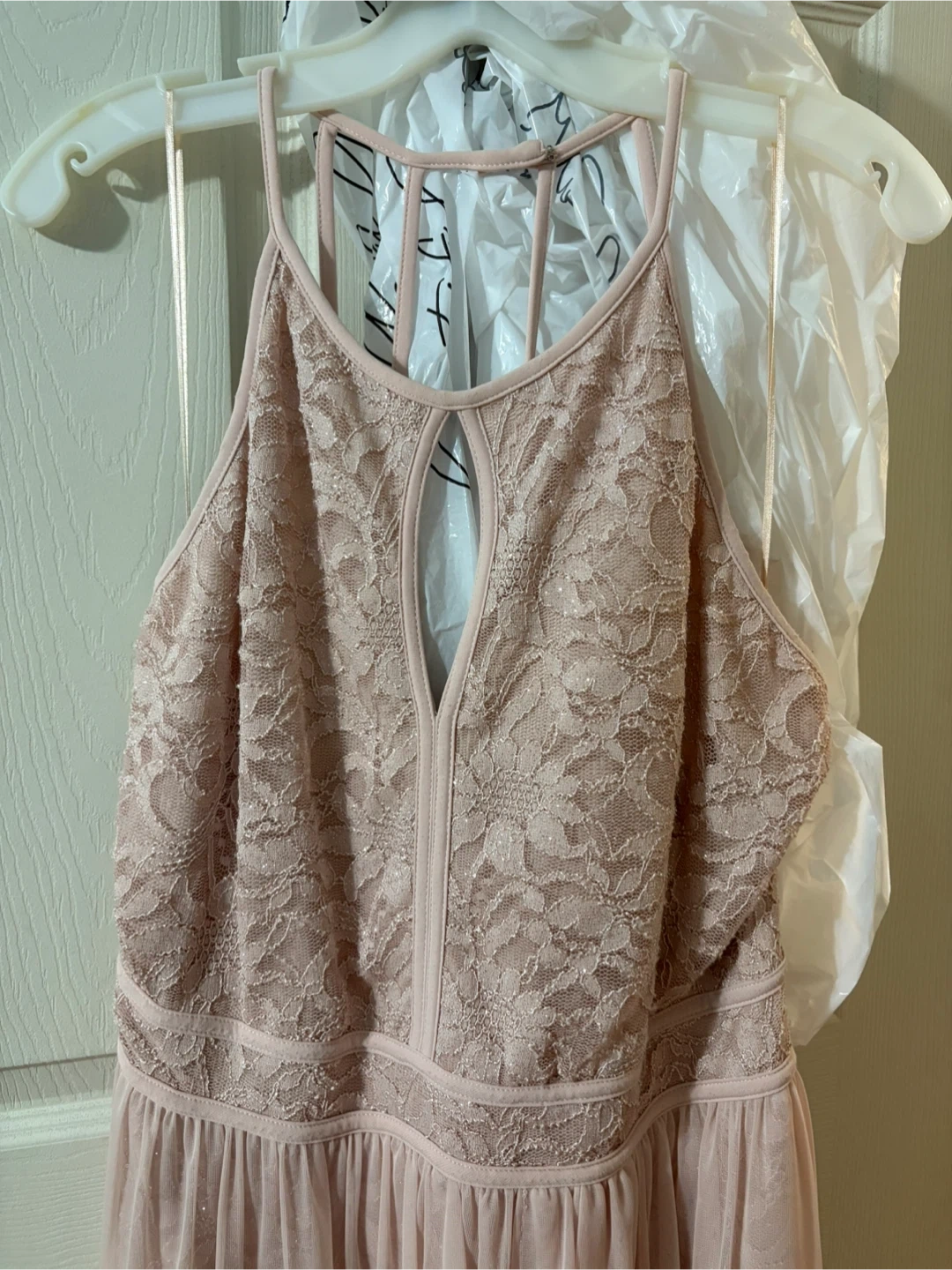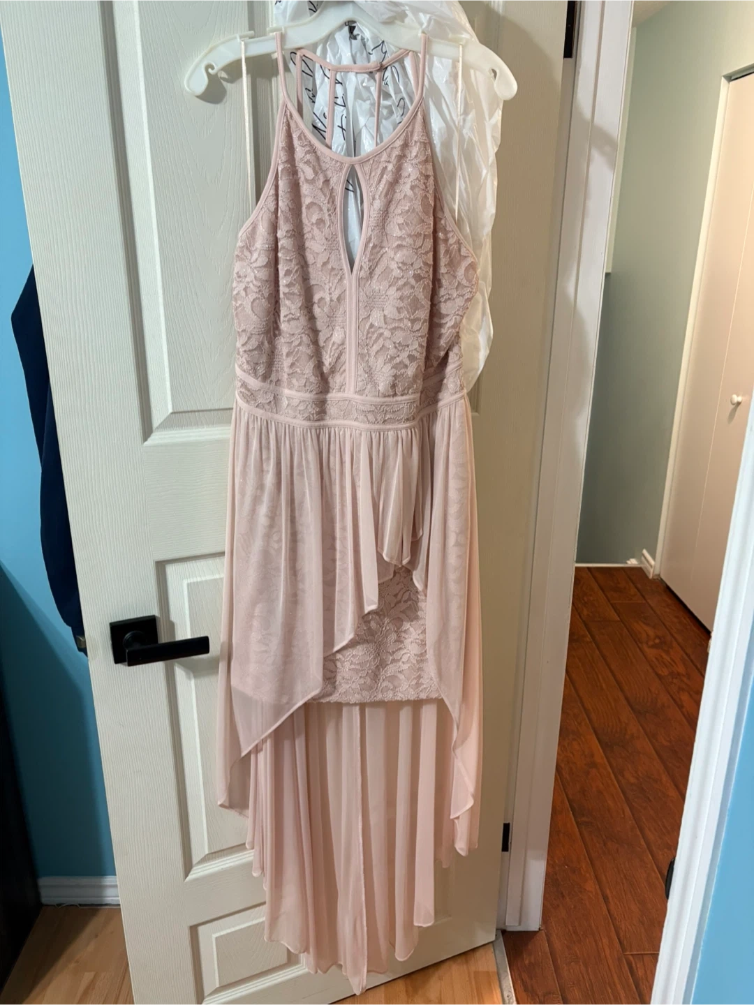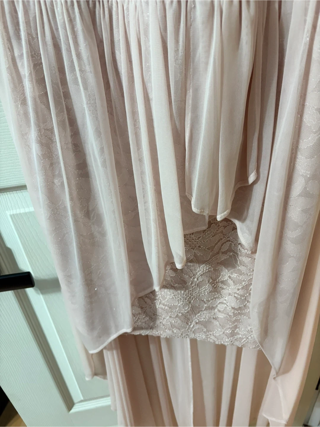 Selling a lovely pink lace high low dress! It's in great condition and ready for a new occasion. The dress features a delicate lace bodice and a flowing high low maxi skirt. Perfect for a special event or a night out. Only worn once.