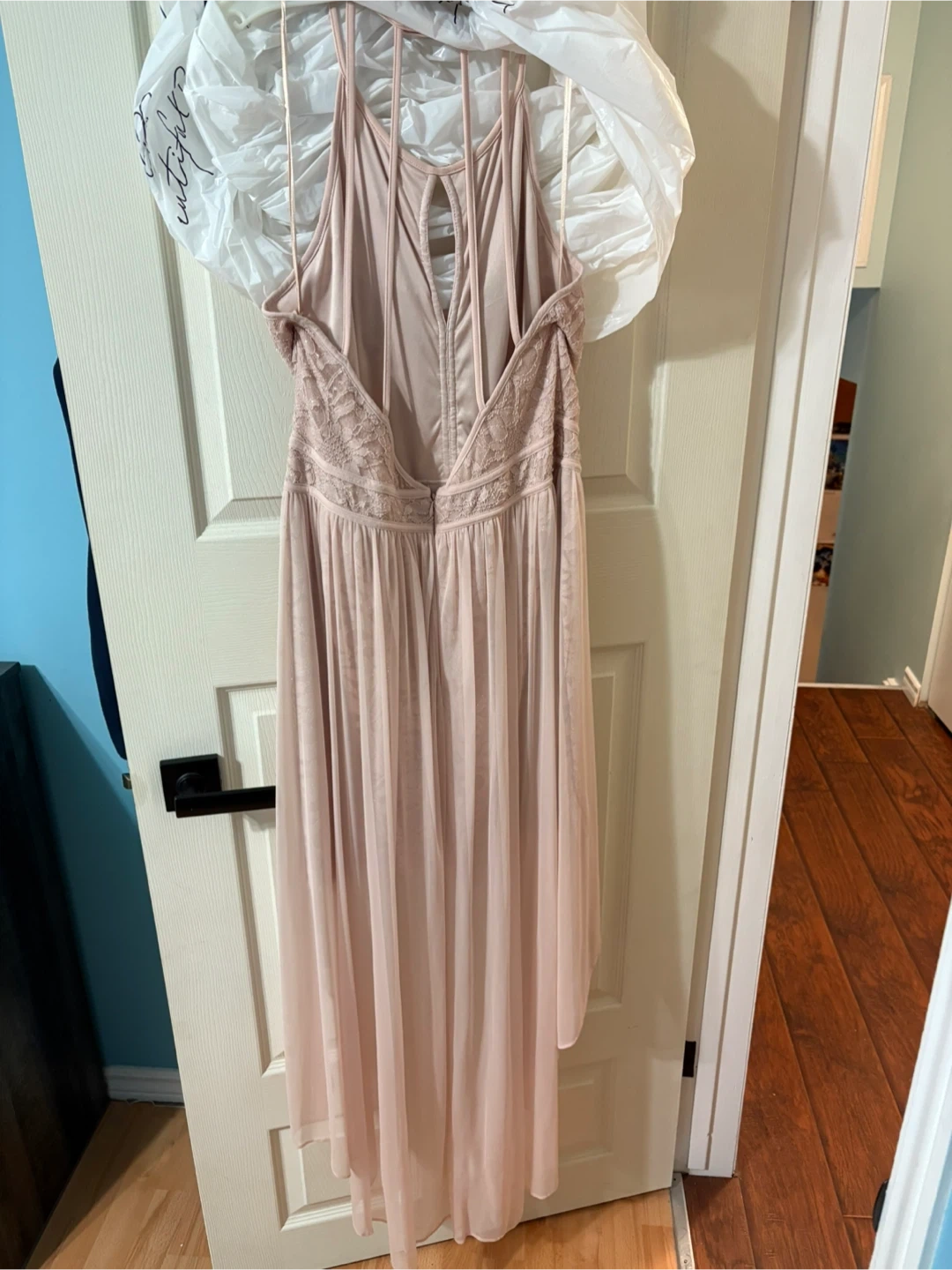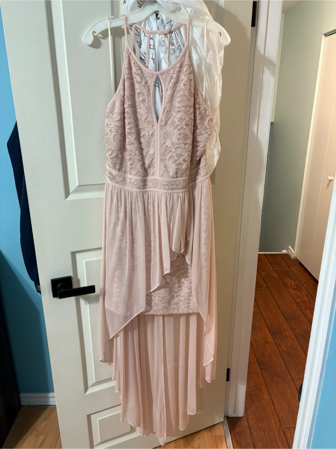 Selling a lovely pink lace high low dress! It's in great condition and ready for a new occasion. The dress features a delicate lace bodice and a flowing high low maxi skirt. Perfect for a special event or a night out. Only worn once.