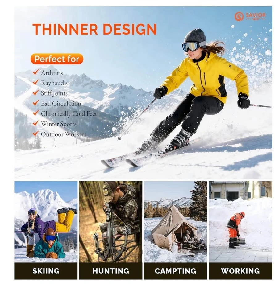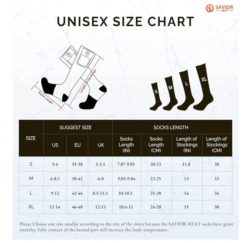 SAVIOR HEAT Heated Socks for Men Women, App Control Merino Wool, 7.4V Rechargeable Electric Battery Ski Socks, Smart Safety 3 Heat Levels for Winter Skiing Hunting Work Hiking Riding Fishing