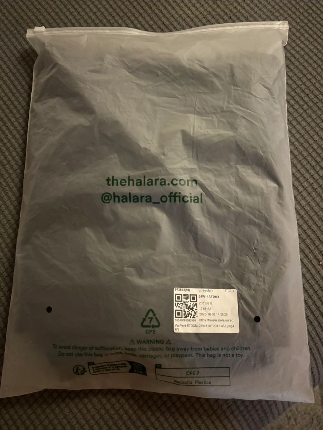 Selling a pair of Halara wide leg dress pants in size L (Regular). These are a stylish and comfortable choice for any occasion. The manufacturing date is 2023 October 14. They are in great condition and ready for a new owner!