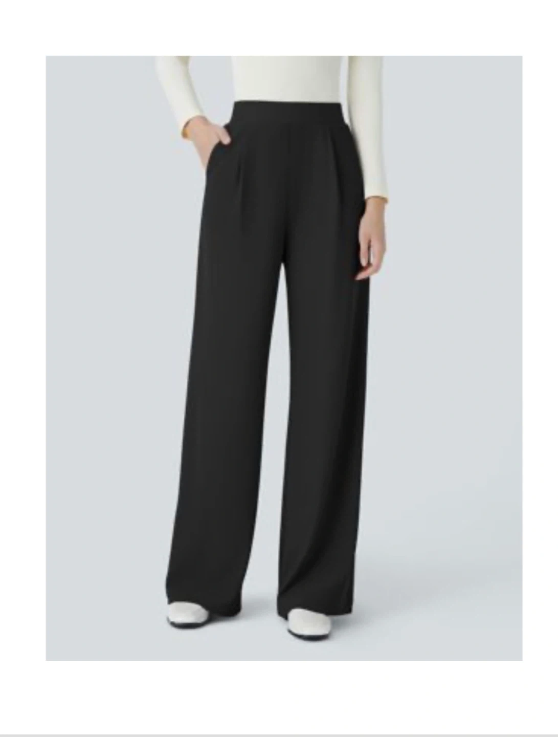 Selling a pair of Halara wide leg dress pants in size L (Regular). These are a stylish and comfortable choice for any occasion. The manufacturing date is 2023 October 14. They are in great condition and ready for a new owner!