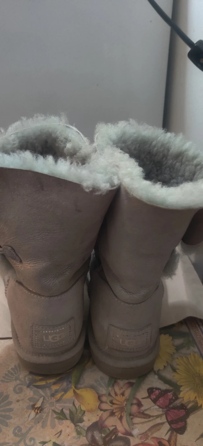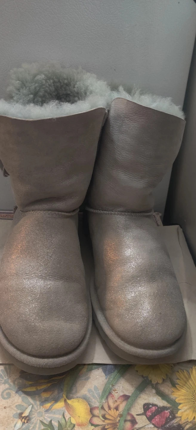 Selling a pair of UGG Australia boots. They are a light grey Shiney colour and have a decorative jewel on the side. I will not reserve without a pickup day which must be within a 7 day period