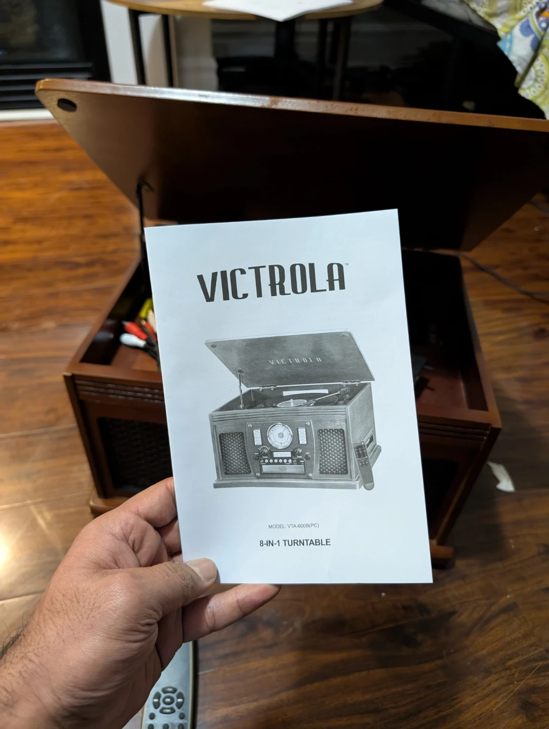 Selling a Victrola 8-in-1 Turntable in great condition! It's a VTA-600BPC model. The unit features a classic design with modern functionality. It includes the original manual and remote control. Manufactured in December 2020.